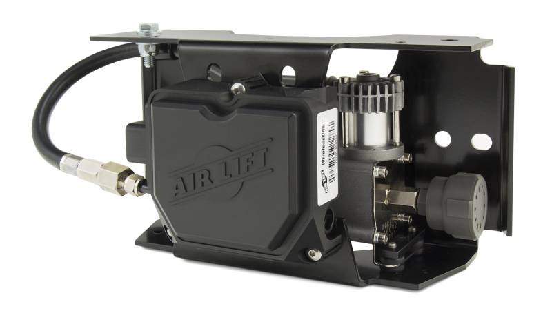 WirelessOne puts the power in your hands. Whether it is with the easy-to-read handheld controller or the free mobile app, you can inflate or deflate your air spring system with one touch. WirelessOne is a single-path system, meaning both air springs will be inflated or deflated to the same pressure. This is ideal for vehicles carrying loads that are equally distributed left-to-right. The controller and app are both programmable with user-defined presets, so WirelessOne can remember your frequently used pressures. Purchasing the WirelessOne system with EZ Mount gives you everything you need for the fastest, easiest installation possible. EZ Mount packages the manifold and upgraded, heavy-duty compressor into one convenient, pre-assembled and factory-tested bracket, giving you everything you need to have full control of your air springs in no time at all.