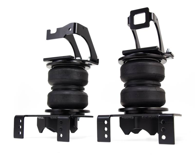 LoadLifter 5000 ULTIMATE adjustable air spring kits feature all of the benefits of our heaviest rated air spring with the addition of an internal jounce bumper inside the spring for the ultimate in ride comfort. An Air Lift exclusive product! Fits vehicles with in-bed hitches. Tow and haul the heaviest loads with safety and comfort with LoadLifter 5000 ULTIMATE. Works with vehicle's leaf springs to provide up to 5,000 lbs. of rear load leveling capacity and keeps the vehicle riding stable, level and comfortable whether loaded or unloaded. Fully adjustable from 5 to 100 PSI. The closed-cell urethane foam jounce bumper inside the ULTIMATE air springs provide a cushion of air that absorbs shock, eliminates harsh jarring on rough roads and protects vehicles carrying heavy loads. Never bottom out again with the ULTIMATE! LoadLifter 5000 ULTIMATE air springs are maintenance free! Safely run with zero air pressure because of the internal jounce bumper. Replaces factory jounce bumper that is sometimes removed when adding air springs. Requires no drilling into frame! Includes industry-exclusive 60 Day No Questions Money Back Guarantee! Includes the most comprehensive Lifetime Warranty in the industry---covers all kit contents including brackets, fittings and air line. Air springs are built like a tire and are reinforced by durable, 2-ply fabric for maximum strength. Exclusive upper and lower roll plates included. Protect the springs from sharp edges, such as brackets or the frame. The kit includes 2 air springs, brackets, air lines, Schrader valve and all of the hardware needed for installation. Includes fully illustrated instruction manual. Add an Air Lift on-board air compressor system to inflate and deflate air springs with the touch of a button from inside or outside of the vehicle.