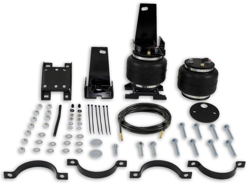 LoadLifter 5000 ULTIMATE adjustable air spring kits feature all of the benefits of our heaviest rated air spring with the addition of an internal jounce bumper inside the spring for the ultimate in ride comfort. An Air Lift exclusive product! Fits vehicles with in-bed hitches. Tow and haul the heaviest loads with safety and comfort with LoadLifter 5000 ULTIMATE. Works with vehicle's leaf springs to provide up to 5,000 lbs. of rear load leveling capacity and keeps the vehicle riding stable, level and comfortable whether loaded or unloaded. Fully adjustable from 5 to 100 PSI. The closed-cell urethane foam jounce bumper inside the ULTIMATE air springs provide a cushion of air that absorbs shock, eliminates harsh jarring on rough roads and protects vehicles carrying heavy loads. Never bottom out again with the ULTIMATE! LoadLifter 5000 ULTIMATE air springs are maintenance free! Safely run with zero air pressure because of the internal jounce bumper. Replaces factory jounce bumper that is sometimes removed when adding air springs. Requires no drilling into frame! Includes industry-exclusive 60 Day No Questions Money Back Guarantee! Includes the most comprehensive Lifetime Warranty in the industry---covers all kit contents including brackets, fittings and air line. Air springs are built like a tire and are reinforced by durable, 2-ply fabric for maximum strength. Exclusive upper and lower roll plates included. Protect the springs from sharp edges, such as brackets or the frame. The kit includes 2 air springs, brackets, air lines, Schrader valve and all of the hardware needed for installation. Includes fully illustrated instruction manual. Add an Air Lift on-board air compressor system to inflate and deflate air springs with the touch of a button from inside or outside of the vehicle.