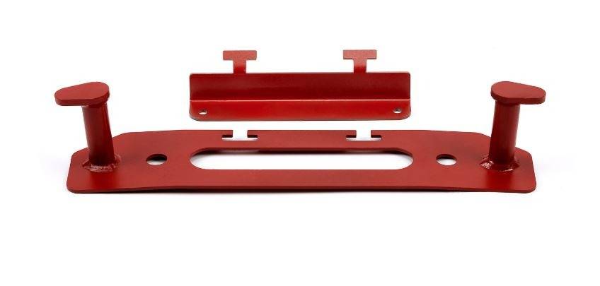 RED ROPE STORING FAIRLEAD BACKING PLATELimited 1 Year WarrantyRed fairlead mounting plate that fills gap in factory bumper; features stanchions for winch rope and hook and license plate mounting bracket