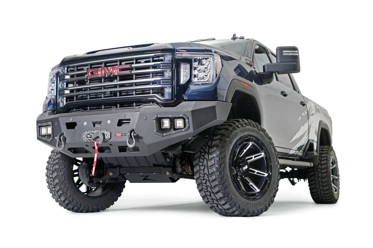 Ascent HD Bumper GMC 2500/3500 without GuardWARN Ascent HD front bumper for GMC 2500/3500 with integrated winch mount that will accept large or mid-frame winches up to 18,000 lbs in capacity.