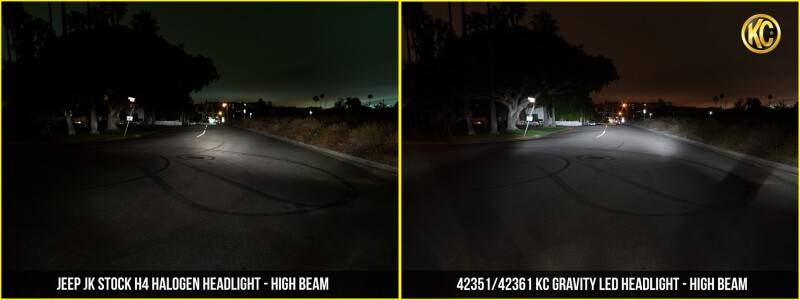 Proudly Made In The USAFEATURES-2 x 40W Gravity LED 7" Headlights-Hard Coated Polycarbonate Lens-Full Plug-n-Play for 97-06 Jeep TJ Wrangler/7" Universal H4-Precision Die-Cast Aluminum Housing-KC Engineered Polished Reflector Optics-DOT Compliant Low Beam, High Beam and Day Running LampLIGHT PERFORMANCE(PER LIGHT)-Raw Lumens: Low- 1,260 lm, High- 3,666 lm, DRL- 275 lm-Compliance: SAE J851 & ECE-R112-Lux @ 10 Meters: Low- 415 lx, High- 775 lx-Candela: Low- 41,500 cd, High- 77,500 cd-Beam Distance: Low- 407m, High- 557mSPECIFICATIONS(PER LIGHT)-Wattage: Low- 18W, High- 22W-LED Bulb: CREE XHP35 HI and Nichia-Color Temperature: 5000K-Amp Draw: 1.88A-Voltage: 9V-18V-IP Rating: IP68-Product Dimensions: W - 6.96" x D - 3.72"Parts Included in Pair Pack-(2) Gravity LED 7" Headlights-Capacitor Harness-Plug and Play Connectors, Jeep TJ/7" Universal H4 -30 Amp LED Switch w/ Panel -Mounting HardwareGravity EXTREME OUTPUT AND EFFICIENCY Gravity LED 7" Headlights feature KC's patented Gravity Reflective Diode system aims LEDs into precision reflectors, capturing all light to project it forward.HIGH/LOW/DRL FUNCTIONS BUILT INKC's Headlights now feature Low Beam, High Beam, and Daytime Running Light functionality. Greatly improving visibility and clarity over factory 1997-2006 Jeep Wrangler TJ headlights, as well retrofit 7" round headlight openings on classic domestic, European and JDM vehicles.DESIGNED FOR DURABILITYSurrounding our Gravity LED 7" Headlight is a durable die-cast housing, and a hard coated Polycarbonate lens, all of which is designed to withstand the harshest climates, terrains and driving conditions.