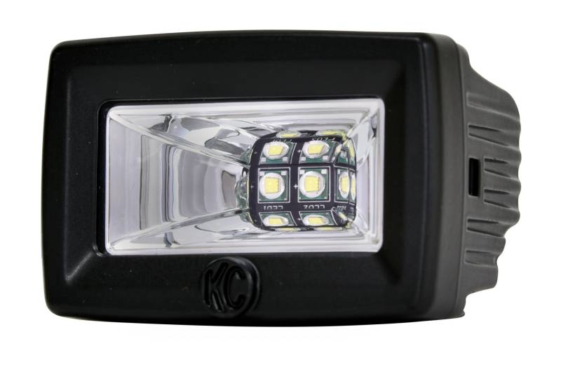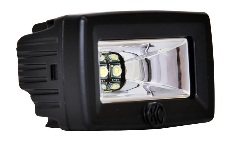 C2 LED Flood BeamFEATURES-20W 2" C2 LED Area Flood Light-Durable Diecast 6063 Aluminum Housing-UV Resistant Black Powder Coated Housing-Dual Oversized Heat Sink Design for Cooler, Brighter and Longer Lasting LED Performance-Gore Military Grade Breather Membrane to prevent condensation and entry of dust/contaminants-Optically Clear and Shatter Proof Lexan Lens-Ideal for Illuminating Immediate Areas as a Scene, Work or Effective Flood light-120 Scene Beam Pattern For Evenly Distributed LightingLIGHT PERFORMANCE(PER LIGHT)-RAW Lumens: 2,200 lm-LUX @ 10 meters: 27 lx-Candela: 2,700 cd-Beam Distance (Meters): 104mSPECIFICATIONS(PER LIGHT)-Wattage: 20W-LED Source: CREE XMK-LED Color: 6000K-Amp Draw: 1.6A-Voltage: 9V-36V-IP Rating: IP69K-Product Dimensions: W - 2.85" x H - 2.21/1.91" x D - 2.17"OPTICAL PERFORMANCE AND LED EFFICIENCYKC's C2 utilizes ultra wide 120 degree flood reflector optics to provide smooth and evenly distributed light across a horizontal field of vision. This light is ideal for illuminating immediate areas as a work or scene light, dramatically improving night time safety and visibility.DURABLE CONSTRUCTION FOR RELIABLE LIGHT PERFORMANCEConstructed from a lightweight military grade (US MIL-810-STD) IP69K rated sealed Aluminum Die-Cast Housing with shatter proof GE Lexan lens for an impenetrable, waterproof housing.The C2 scene light was built to last, utilizing advanced Dual Heat-Sink design for maximum heat dissipation to ensure optimum light performance for up to 50,000 hours.