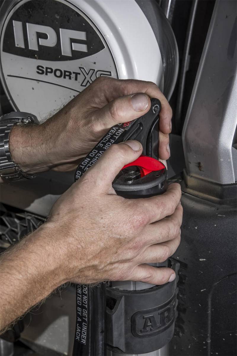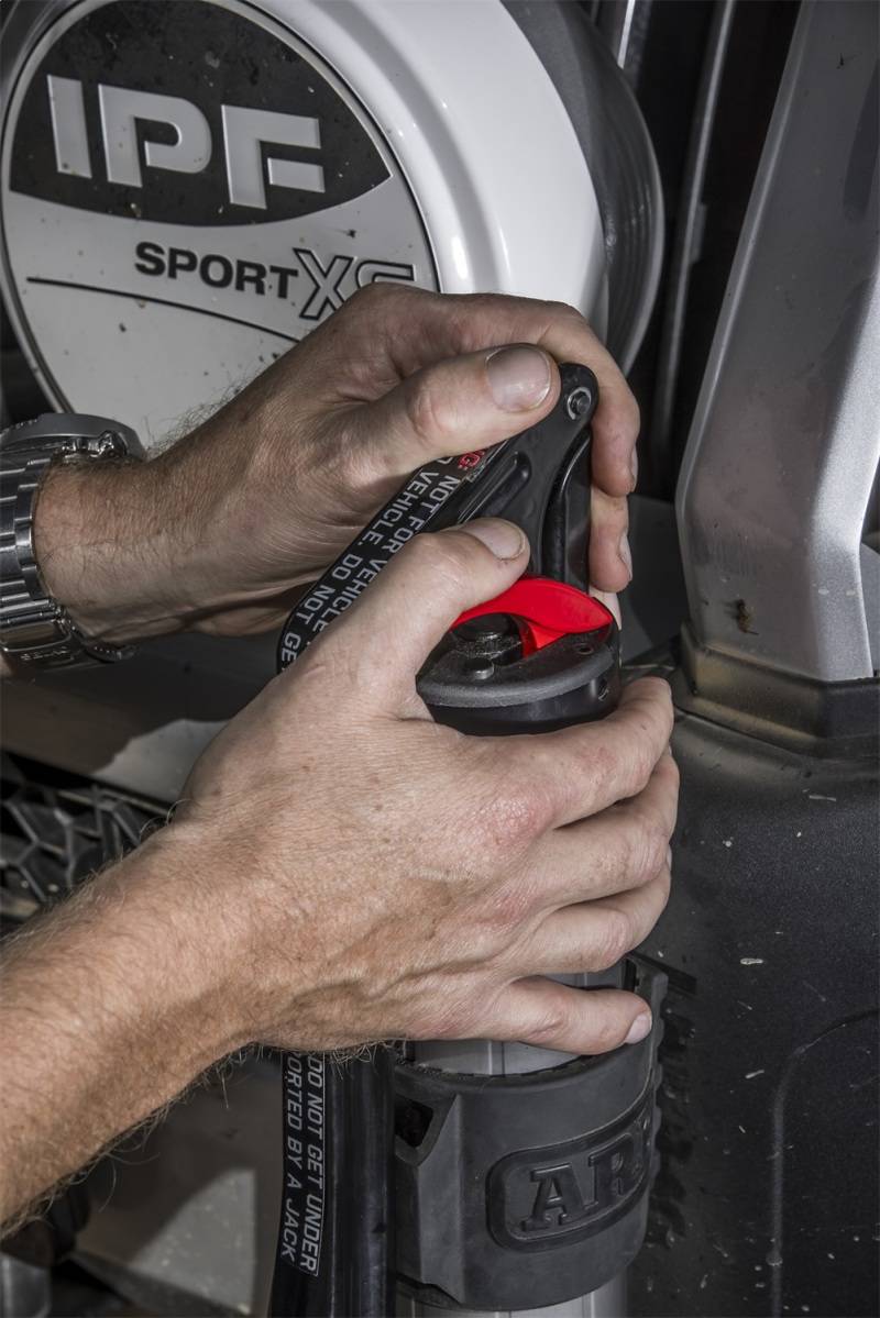 What happens when engineers get creative and bring hydraulic technology into the recovery space? Theres little doubt that the traditional farm jack is a handy piece of equipment to have when youre driving off road. You can use it to move your vehicle out of awkward situations, lifting vehicles to fill in voids beneath the tires or even as a bead breaker when you have to make a tire repair. But, as we all know, farm jacks can be dangerous. Theyre inherently unstable and there are countless YouTube videos of users getting injured from a rogue handle or getting their hands caught between the handle and the body of the jack. With this problem in mind, ARBs team of engineers was determined to come up with a better solution to the unsafe farm jack problem. The focus was to design a safer and easier mechanical jack while being lighter and more compact. Adding a new dimension to traditional techniques, the long-travel ARB JACK is backed by the unique power of hydraulic technology. Kicking into action when even the lightest force is applied to the handle, the hydraulics will smoothly jack the vehicle up at .5in increments with each downward maneuver. While in action, a black rubber body bumper shields the vehicle from risk of damage during the recovery. The easy-to-access red lowering lever ensures lowering the vehicle is achieved swiftly and safely thanks to the two-stage descent feature and safety stop. With the press of a lever, the user is able to adjust the lower speed between a slow or rapid descent. Carefully designed on the basis of matching ergonomic form with safe and reliable functionality, the handles high position and top pivot function provides users with ultimate control while preventing the need to uncomfortably kneel down to operate. Standing true to its adaptable character, JACK features an adjustable foot that can be rotated 360? via the shaft to match the angle of the terrain and reach a firm, stable connection between the base and ground.