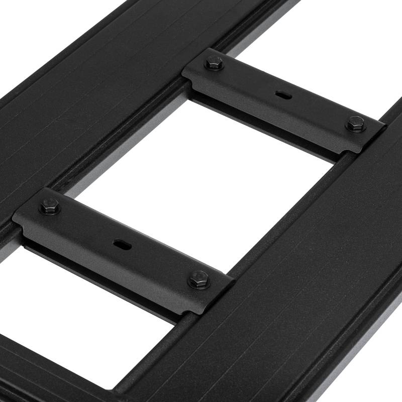 The BASE Rack takes accessories and cargo loading to a whole new level of simplicity, speed and personalization. Adding to its broad range of attachment options, the Narrow BASE Rack Bridge Plate is ideal for mounting roof top tents. Its four powder-coated steel brackets attach between cross beams to securely affix a tent but keep install and removal quick and easy. By incorporating a dovetail extrusion around both the full perimeter and along each edge of the internal beams, the BASE Rack provides endless mounting and attachment options. Adding, removing and repositioning accessories and roof loads is quick and easy with the BASE Rack's dovetail system, making it easier to install and remove individual items without disturbing the whole load. Plus, unlike traditional roof rack channels, the BASE Rack dovetail extrusion won't collect dust and debris.
