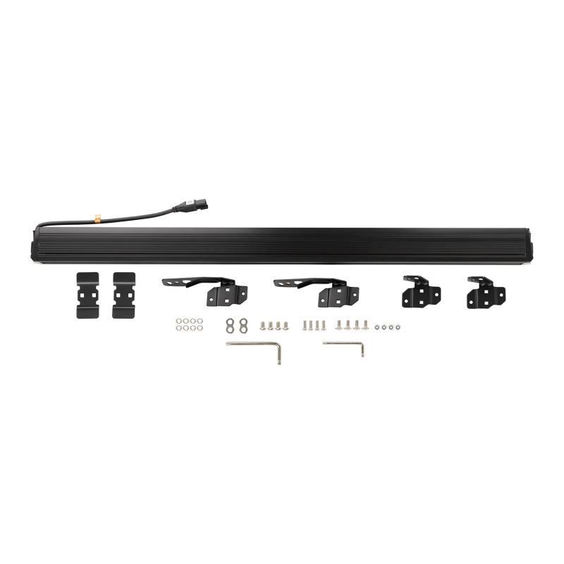 Complementing the sleek design of the ARB BASE Rack, ARB has added to its family of driving lights a dedicated roof rack mounted light bar. Using a uniquely tuned reflector design to limit reflection off bar work and the vehicle, this slimline bar pumps out a competitive 1 lux @ 2388ft with up to 196ft of spread. Manufactured from extruded aluminium with high pressure die cast aluminium caps, this heat dissipation chassis provides great longevity to the LEDs and allows for a couple of hits from low hanging branches while out on the trails. The body is fully powder coated in a stealth black finish, with a light tint added to the polycarbonate lens providing a non-obtrusive look. The unique half cup reflectors throws the light down the road where needed, providing a defined beam line that has been tuned into a spot/flood ?combo configuration. Using the mounting system build into the ARB BASE Rack allows the light to be setup in minutes with different mounting options in front of the rack and below the rack which provides additional protection and a hidden look.
