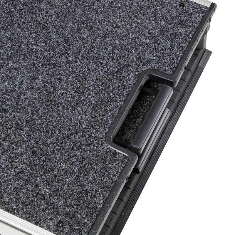 - Vehicle specific side floor kit with easy latches completes installation and provides additional storage areas within the cabin or tray