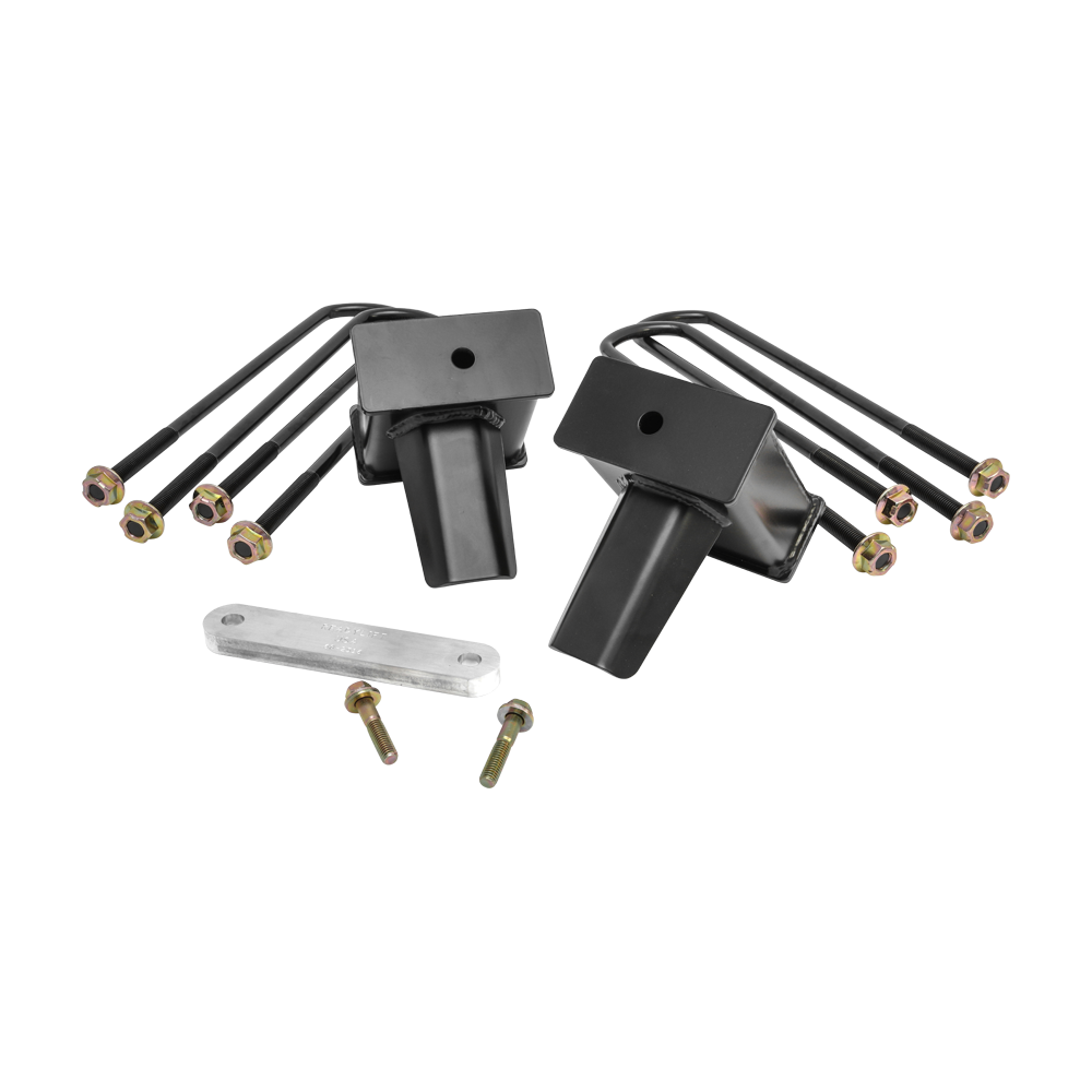 ReadyLIFT OEM-style rear block kits are now available for 2017-2022 Ford Super Duty model specific applications. These 5.0" fabricated steel Flat Rear Block Kits include two (2) rear blocks, billet drive line spacer, four (4) long e-coated U-bolts and eight (8) nuts and washers. Based on OEM designs and never made out of light weight extrusions, our 5" 2017-2022 Ford Super Duty Tapered Rear Blocks have Integrated OEM style bump stops. ReadyLIFT Block Kits will put a slight rake back in your truck for hauling or towing and are designed to work with your ReadyLIFT Suspension Leveling Kit. In fact, these blocks are the ideal Tow Package upgrade for not only for stock height vehicles but lifted or leveled trucks too! Like all ReadyLIFT products these block kits come with our Limited Lifetime Warranty. NOTE: 66-2751 5" block is for use on 2017-2022 Ford F250 Super Duty 4WD trucks with 2-piece drive shaft. Lift height will vary depending on what factory block your truck has. NOTE: The lift blocks in this kit are not designed to work with aftermarket or factory add-on air spring/load leveling kits that attach to the bump stop tangs. Use of this type of air bag system will void all block warranties and can cause failure of the block bump stop tang.