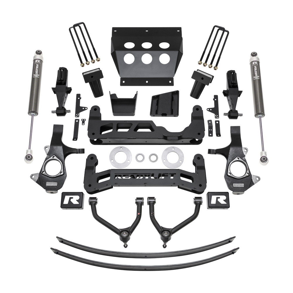 ReadyLIFT introduces a new 9-inch big lift kit for 2014-2018 Chevy Silverado and GMC Sierra 1500 trucks, compatible with models with or without front MagneRide. The 44-34900 lift kit is tailored for GM 1500 trucks (2014-2018) featuring factory Aluminum or Stamped Steel front suspension. It includes new tubular upper control arms, retaining the factory turning radius and minimizing track width increase to less than 0.5" per side. This kit accommodates up to a 37" tall tire on a 9" wide wheel with -12 offset. The kit's unique "clam-shell" style lower strut extension maintains the use of factory struts and avoids strut rotation. These extensions feature TCT lower bushings for a precise pivot point, preserving the factory ride. The new tubular upper control arms with TCT pivot bushings offer enhanced strength compared to OE stamped steel arms. Construction elements include boxed steel front/rear cross members and a 3/16" plate steel front skid plate. It allows for the original front plastic gravel guard, maintaining engine bay protection and proper airflow. The 1/4" boxed plate steel differential drop brackets are designed with a double gusset and boxed center rib to withstand differential torsional twisting. Not suitable for AWD - only 2WD or 4WD. The rear lift is achieved with a rear add-a-leaf spring and 3/16" thick plate steel rear lift blocks, featuring built-in bump stop landings and an offset pin design for axle centering and maintaining proper pinion angle. The lift system includes Falcon 1.1 Monotube rear shocks. Notes: Suitable for up to a 37" tall off-road tire (9" wide wheel, -12 offset), though some aggressive tires might need minor trimming. Not for AWD, GMC Denali 1500 with REAR MagneRide, or models with Rear MagneRide. Front MagneRide compatible and usable on trucks with factory Aluminum front suspension. The kit comes with ReadyLIFT's ReadyGuard Powertrain Warranty.