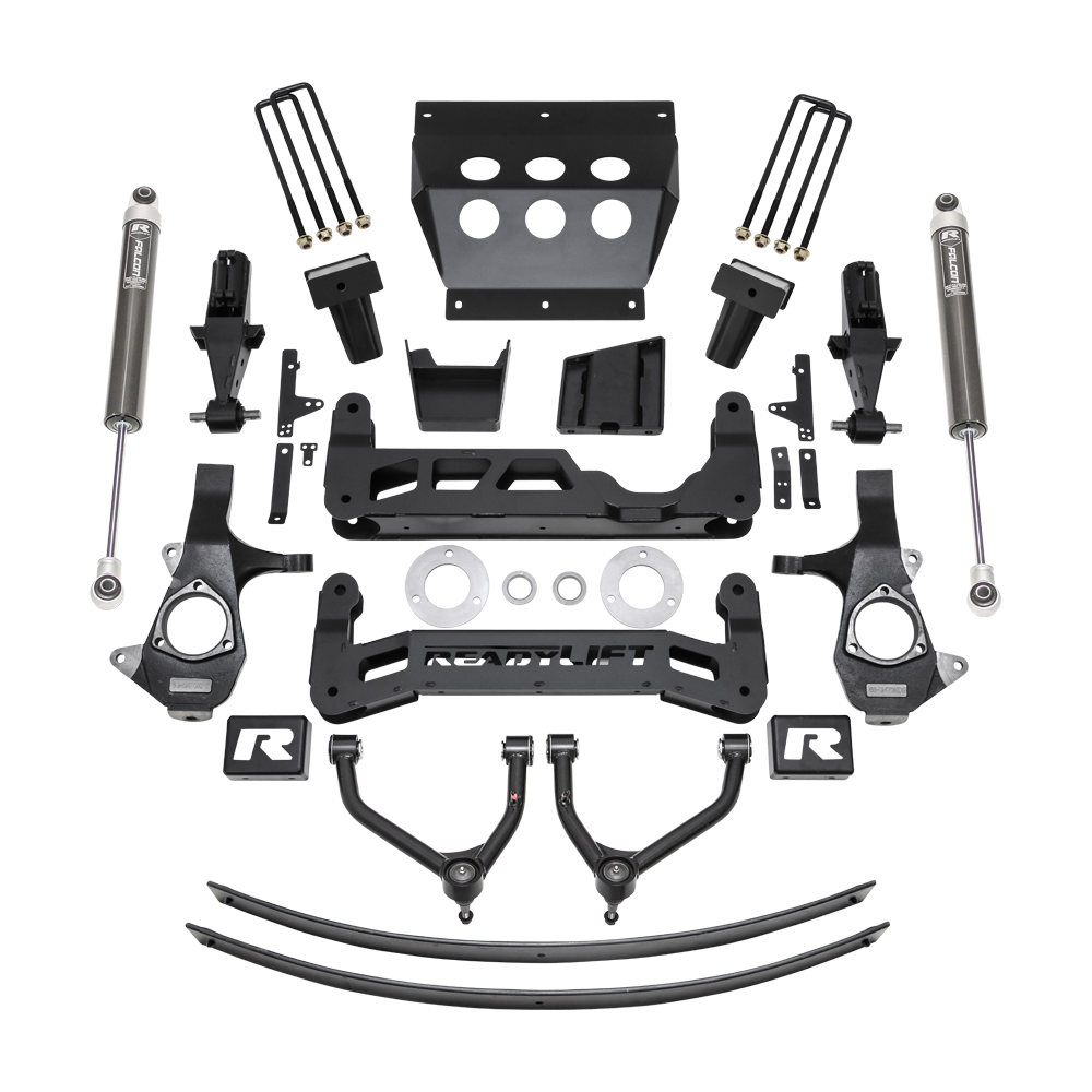 ReadyLIFT introduces a new 9-inch lift kit, model 44-34910, suitable for 2014-2016 Chevy Silverado and GMC Sierra 1500 trucks, compatible with both standard and front MagneRide equipped vehicles. This lift system, designed specifically for trucks with the Cast Steel front suspension, incorporates new tubular upper control arms. It maintains the factory turning radius and limits track width increase to less than 0.5" per side. The kit accommodates up to a 37" tall tire on a 9" wide wheel with a -12 offset. The innovative "clam-shell" style lower strut extension preserves the use of factory struts and negates the need for strut rotation. It features TCT lower bushings for a precise pivot point, preserving the factory ride. The new tubular upper control arms with TCT pivot bushings enhance upper control arm strength, surpassing the original stamped steel control arms. The lift kit includes boxed steel front/rear cross members and a full-width front skid plate made of 3/16" plate steel. It also accommodates the OE front plastic gravel guard to protect the engine bay and maintain proper airflow. The 1/4-inch boxed plate steel differential drop brackets are double-gusseted with a boxed center rib for durability against torsional twisting of the front differential (not suitable for AWD - only 2WD or 4WD). Rear lift is achieved with an add-a-leaf spring and 3/16-inch thick plate steel rear lift blocks featuring built-in bump stop landings and an offset pin design for axle centering and retaining proper pinion angle. The system includes Falcon 1.1 Monotube rear shocks for enhanced performance. Note: It's designed for up to a 37" tall off-road tire requiring a 9" wide wheel with -12 offset to avoid rubbing (minor trimming may be needed for some aggressive tires). Not recommended for GMC Denali 1500 or other models with Rear MagneRide, only front MagneRide is compatible. The kit comes with ReadyLIFT's ReadyGuard Powertrain Warranty.