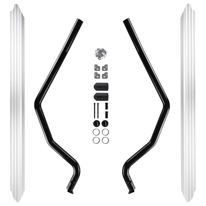 Side rail and combination steps to protect the front quarter panels and lower sills. The integrated step offers improved vehicle access. While they offer an excellent barrier against rock ledges, they are not considered a true rock slider that might be required for aggressive rock crawling.