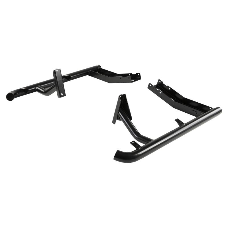 Side rail and combination steps to protect the front quarter panels and lower sills. The integrated step offers improved vehicle access. While they offer an excellent barrier against rock ledges, they are not considered a true rock slider that might be required for aggressive rock crawling.