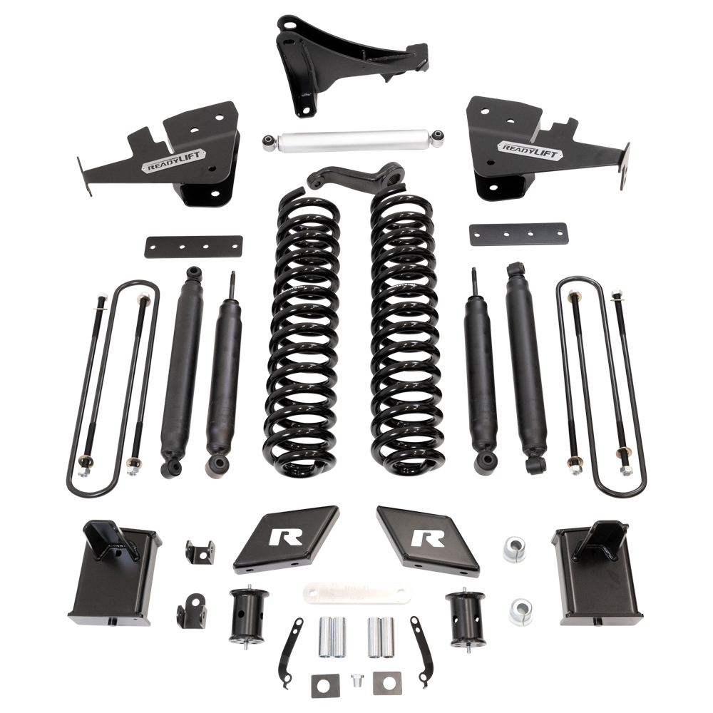 ReadyLIFT Suspension is now offering two new 7" Coil Spring Lift Kits made to fit 2017-2022 Ford Super Duty F250/F350 4WD trucks. The 49-27700 includes our front and rear SST3000 performance shocks. The kit has our popular cast front track bar relocation bracket, heavy-duty radius arm drop brackets, and rear fabricated blocks with integrated bump stop tangs. This gives Super Duty owners an excellent alternative for lifting their trucks to fit larger tires. This new 7" lift system will raise the 2020-2022 4WD Super Duty truck 7" (2017-2019 SD 6.5"). The coil spring system allows for increased tire sizes and widths along with providing improved ground clearance on the street or trail. Super Duty customers will love the head-turning stance! This premiere big lift kit allows for up to 38" tall tires. The ReadyLIFT 7" Coil Spring Lift Kit system for 2017-2022 Ford Super Duty trucks also includes model-specific brake line extension brackets, our time-tested bump stop extension brackets, and new front sway bar frame mount extension brackets to keep the factory sway bar at the proper geometry. Super Duty wants rugged looks and a smooth but controlled ride, the new ReadyLIFT 7" Coil Spring Suspension Kit System is the perfect solution.