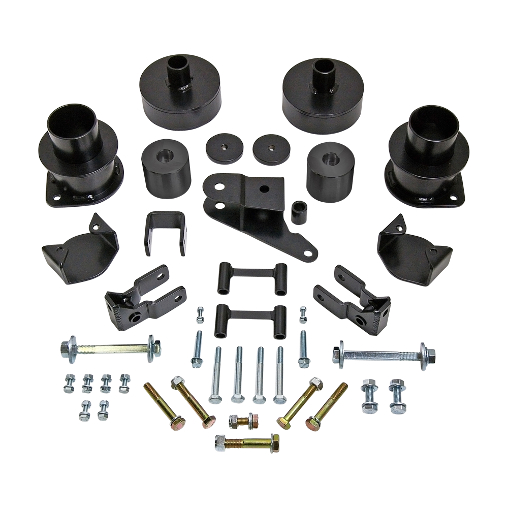 Jeep Wrangler JK owners, the lift kit system you been waiting for is here. The ReadyLIFT 69-6000 SST Lift Kit will raise the front of your 2007-2018 Jeep JK 3.0" and 2.0" in the rear. Rather than replace your reliable OEM springs or shocks, we incorporated our proven spring spacer technology into this comprehensive package which allows you to retain your OEM coil springs which translates into retaining the stock ride quality. You don't need to have to deal with a rough ride from other kits that replace your springs and shocks. This kit has it all and is done RIGHT! Tough powdercoated steel front and rear spring spacers provide the altitude adjustment while our panhard bar relocation bracket and shock extensions work together to keep that factory suspension and alignment geometry. That is very important if you want your Jeep JK to ride and handle properly. We even developed front and rear bump stop extension brackets and included them in the kit to help maintain the OEM compression travel. This rugged new Jeep SST Lift Kit comes with all necessary hardware and instructions, as well as a Lifetime Limited Warranty on our products. Installation of the ReadyLIFT 69-6000 Jeep JK Wrangler SST Lift Kit System allows for use of up to 35" tall tires. We rigorously tested this lift kit system using 35" tires on 18" wheels which proved to be a nice combination even when flexing the suspension during crawling trials. NOTE: 2012-UP vehicles may require driveshaft and exhaust modifications. NOTE: Some JK vehicles "may" require aftermarket longer front sway bar end links.