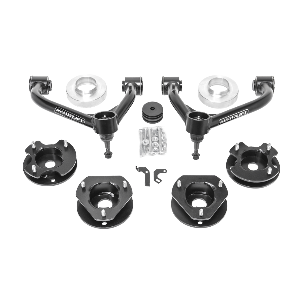 ReadyLIFT is now shipping a premium-grade lift solution for the all-new 2021-2023 GM 1500 SUVs (2WD/4WD). Our new 69-31300 3'' SST Lift Kit is engineered specifically for the new Chevy Tahoe, Suburban, and GMC Yukon vehicles with standard coil suspension, excluding models with Magnetic Ride. This lift kit provides a 3-inch lift height over stock, allowing for the installation of a plus-1 or plus-2 larger tire and wheel combination without compromising the plush factory ride and handling of these GM SUVs. It offers increased ground clearance and a taller stance. The 69-31300 SST Lift Kit includes ReadyLIFT tubular control arms with corrected ball joint cup angles, heavy-duty one-ton ball joints, and maintenance-free non-bonded TCT pivot bushings to ensure proper suspension geometry and functionality. The front lift is achieved with new heavy-duty steel top mount front strut extensions, while the rear is lifted with fabricated steel top mount spacers and CNC-machined billet Aluminum rear coil spring pre-load spacers. These rear pre-load spacers add a touch of rear spring rate, preventing rear sag when the vehicle is loaded down or carrying many occupants. The kit also includes relocation brackets to allow for slack on critical suspension sensor wires. It's a bolt-on solution that doesn't require modifications and maintains the factory ride and handling experience. You can run up to a 285/60-20 tire on a +18 offset wheel with no trimming, or a 295/60-20 with a 0 to +14mm offset with trimming. Please note that this kit is not for use on Magnetic Ride, Premier, High Country, AT4, and Denali models, and not compatible with GM Super Cruise or GM Ultra Cruise. If using a Chevy Tahoe Diesel, a tire size of 285/60R20 +18 will require trimming or recommend a smaller tire size.