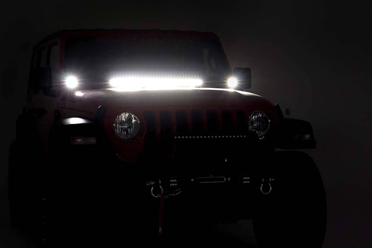 Rough Country - LED Light Kit - Cowl Mount - 2" Black Pair - Jeep Gladiator JT/Wrangler JL (18-25)LED Light Kit - Cowl Mount - 2" Black Pair - Jeep Gladiator JT/Wrangler JL (18-25)