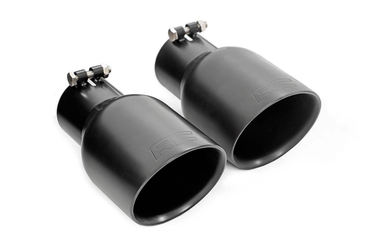 Overhaul the look and sound of your JK s exhaust with Rough Country's Dual-Outlet Performance Exhaust System. This durable exhaust system offers a throaty growl and menacing appearance that fits in perfectly with the aggressive look of a modified Jeep. Each exhaust system features a 409 stainless body with high temperature resistant coating for a long lifespan of good looks. This high-quality exhaust modification features 21/2-inch mandrel-bent tubing that s designed for a high-flow, guttural sound that every driver will enjoy. A set of dual-wall exhaust tips with embossed "RC" logo add a finishing touch to this great-looking upgrade, constructed from corrosion resistant 304 stainless material. Rough Country's Dual-Outlet Performance Exhaust System is easy to install with no cutting or welding required!