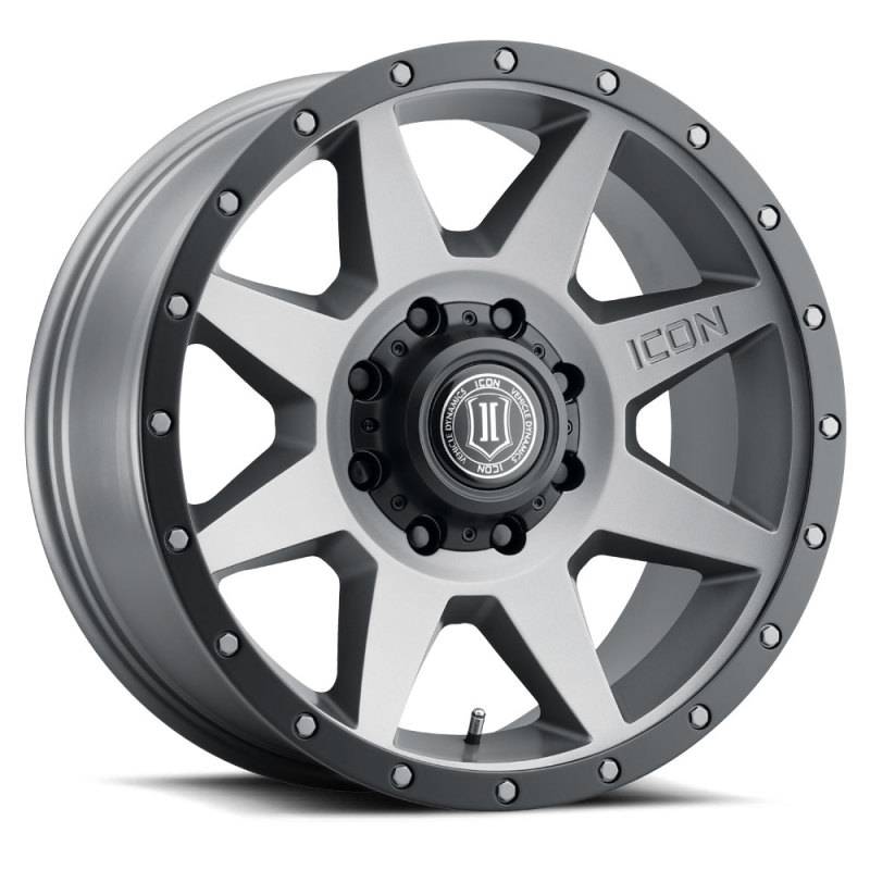 Constructed using a high-strength aluminum alloy the 20” 'Rebound' yields a 3,700 pound load rating that will withstand daily driven use, tow/haul duty, and even the spirited full size off-road excursion! These wheels are available in our signature Bronze, Satin Black or Titanium finishes and maintain ICON Alloys’ commitment to producing wheels that deliver on fit, style, and strength. Constructed using a high-strength aluminum alloy the 20” 'Rebound' yields a 3,700 pound load rating that will withstand daily driven use, tow/haul duty, and even the spirited full size off-road excursion! These wheels are available in our signature Bronze, Satin Black, Double Black, or Titanium finishes and maintain ICON Alloys’ commitment to producing wheels that deliver on fit, style, and strength. ICON Alloys is pleased to announce the arrival of new 20" sizes of our best-selling 'Rebound' wheel designed specifically for today’s most popular 8-lug pickup trucks. Combining sharp lines, a concave spoke design, and color-matched rock ring bolts the new 20x9 ‘Rebound’ has a style that is anything but ordinary. These new wheels not only enhance the appearance of the most common HD pickups, but also improve function with "ICON-optimized" backspacing that provides better wheel fitment, maximized caliper clearance, reduced scrub radius, and unhindered suspension travel.