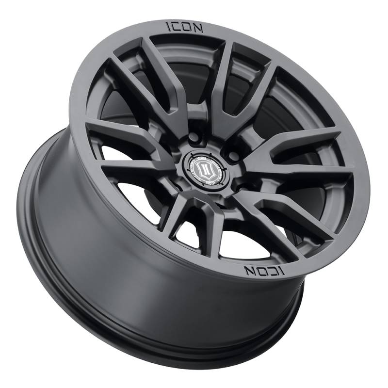 ICON Vector 6 17x8.5 6x5.5 0mm Offset 4.75in BS 106.1mm Bore Satin Black Wheel VECTOR 6 WHEEL