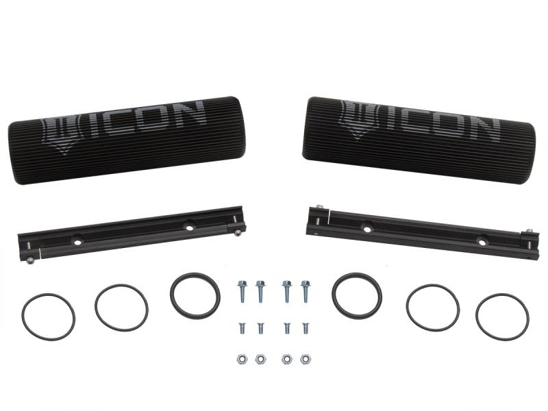 At this time ICON is not offering finned reservoirs as a production option, however these 2.5 Series Finned Reservoir Upgrade Kits can be installed by any ICON Authorized Shock Service Center. This 10” reservoir kit comes complete with a pair of finned reservoirs, dovetail reservoir clamps, and all necessary parts & hardware to complete the process. In an effort to continue our push for excellence ICON is proud to introduce finned reservoir upgrade kits for our 2.5 Series piggyback and remote reservoir shocks. These reservoir upgrade kits will improve the look of any ICON-equipped fender well while allowing for a cleaner install utilizing the included dove tail reservoir clamp. Aside from improving the aesthetics of an existing ICON shock, these finned reservoir kits have functional advantages as well. A surface area increase of 115% provides improved heat dissipation and allows for the shocks to be pushed harder for a longer duration of time before experiencing a reduction in damping ability. This is especially important in ICON CDC Valve shocks, as heat is generated in the reservoir as well as the shock body. Another functional benefit to these new ICON finned reservoirs is dent resistance. In extremely rare cases a standard aluminum reservoir can be hit with rocks or debris and if dented, affect the function of the shock. The design of the ICON finned reservoir increases rigidity, while utilizing a slightly larger outside diameter allowing the fins to take the brunt of potential off-road damage without distorting the inner sealing surface.