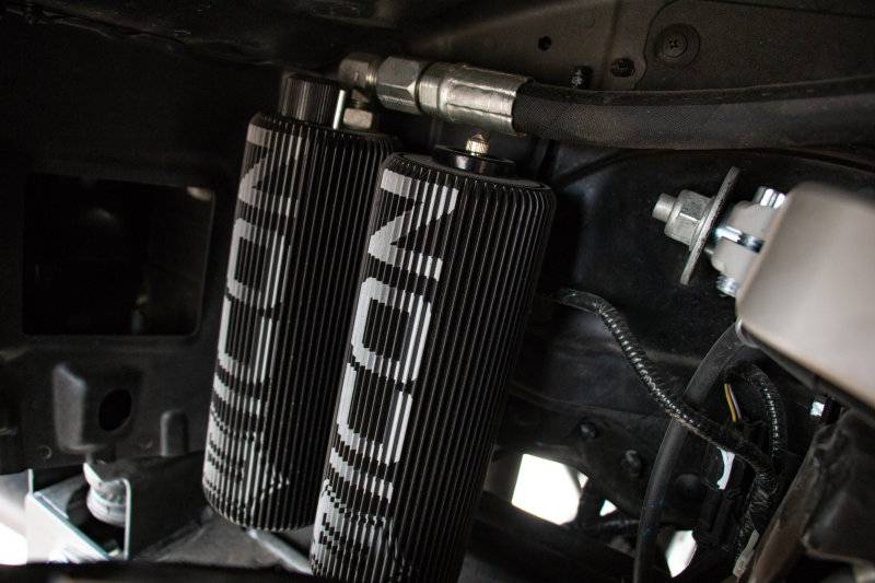 TECH NOTE: Finned reservoir is not compatible with Omega Piggyback Reservoir Bypass Shocks TECH NOTE: Older versions of the reservoir brackets require two 1/4" holes to be drilled for proper mounting of the dovetail reservoir clamps. Newer versions of this bracket will come with the holes pre-drilled and are available for purchase through ICON.