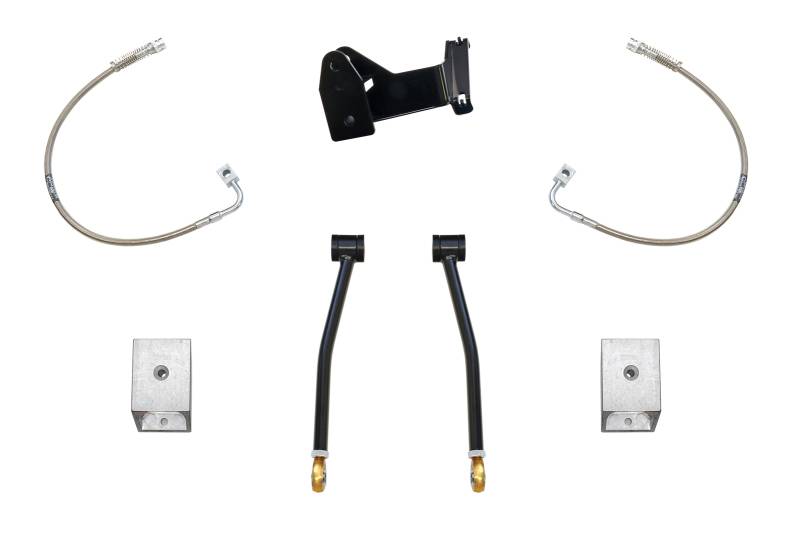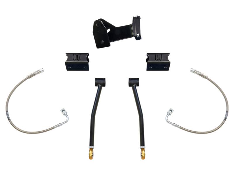 The ICON Vehicle Dynamics 2007-2018 Jeep Wrangler JK Rear Box kit contains many of the miscellaneous parts required to lift the rear of the vehicle when using and ICON 4.5” lift suspension system. This kit includes fabricated rear track bar drop bracket and sway bar links, CNC machined aluminum bump stops spacers, and stainless-steel braided brake lines along with all required mounting hardware.