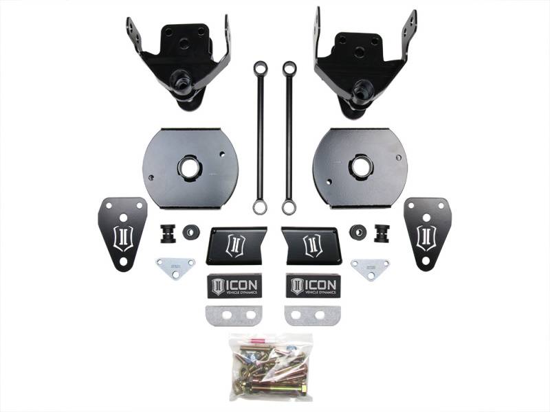 ICON Vehicle Dynamics suspension systems for the 2014-UP RAM 2500 4WD were designed with exceptional performance and ride quality in mind. This 4.5" box kit includes high-strength laser cut bracketry, billet bump stop spacers, fabricated rear coil spacers, and all hardware necessary for a complete install.