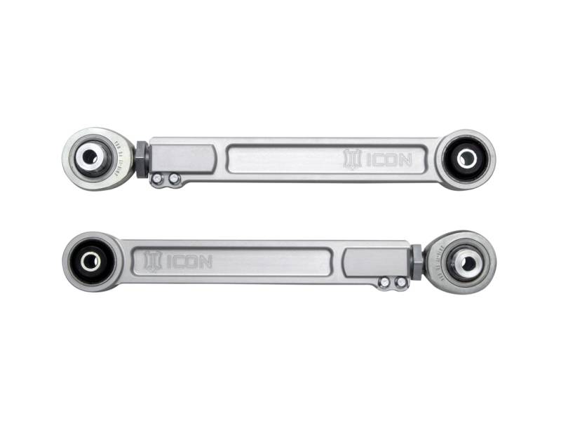 ICON’s billet aluminum rear upper link arms for the 2020-2023 Jeep Gladiator and 2019-2023 Ram 1500 are a significant upgrade over the factory units due to increases in strength, adjustability, and performance. These links are made from CNC machined 6061 aluminum in-house and anodized for corrosion resistance, providing a major improvement over the construction of the stock units. This rear upper link arm kit features PTFE-lined FK rod ends for increased suspension articulation, reduced deflection, and on-vehicle link arm length adjustability using ICON’s double adjuster system. Additionally, multi durometer bushings are installed that allow for noise free operation and maximum angularity without the need for periodic greasing and/or other maintenance. The quality rod ends and bushings featured in these link arms allow the vehicle’s suspension to function as intended, without the bushing bind that limits the vehicle in stock form. After the design phase was completed ICON engineers put these parts through the “ICON1K” real-world test cycle for a final stamp of approval. ICON’s billet aluminum rear upper link arms for the 2020-UP Jeep Gladiator are a significant upgrade over the factory units due to increases in strength, adjustability, and performance. These links are made from CNC machined 6061 aluminum in-house and anodized for corrosion resistance, providing a major improvement over the construction of the stock units. This rear lower link arm kit features PTFE-lined FK rod ends for increased suspension articulation, reduced deflection, and on-vehicle link arm length adjustability using ICON’s double adjuster system. Additionally, multi durometer bushings are installed that allow for noise free operation and maximum angularity without the need for periodic greasing and/or other maintenance. The quality rod ends and bushings featured in these link arms allow the vehicle’s suspension to function as intended, without the bushing bind that limits the vehicle in stock form. After the design phase was completed ICON engineers put these parts through the “ICON1K” real-world test cycle for a final stamp of approval.
