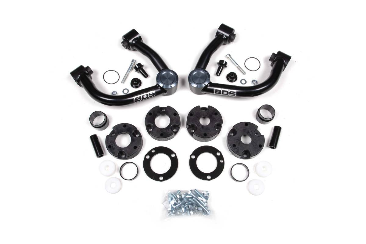 Upgrade your 2021-2025 Ford Bronco with this 4-inch lift kit from BDS Suspension. Engineered to improve stance, performance, and off-road capability, this kit includes everything needed to run up to 35-inch tires. A pair of heavy-duty tie rod reinforcement sleeves is included to protect the factory steering while pushing the Bronco to its limits on the trail. The kit is designed to add lift without overextending suspension or driveline angles at full droop. To prevent maxing out ball joints or CV damage, BDS incorporates a small pre-load spacer and a top spacer for proper height adjustment.