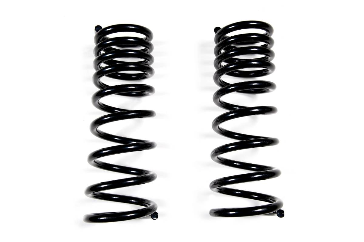 Custom tune the spring rate and ride height of your 3-inch lifted 2003–2013 Dodge Ram 2500 or 2003–2012 Ram 3500 4WD by swapping coil springs. A critical part of your truck's suspension, BDS coil springs support the weight of your truck's body and chassis while the suspension, wheels, and tires follow changes in road surface. Manufactured from high tensile steel, these direct OE replacement coil springs are engineered with a properly sized wire diameter, resulting in maximum reliability without premature coil bind.