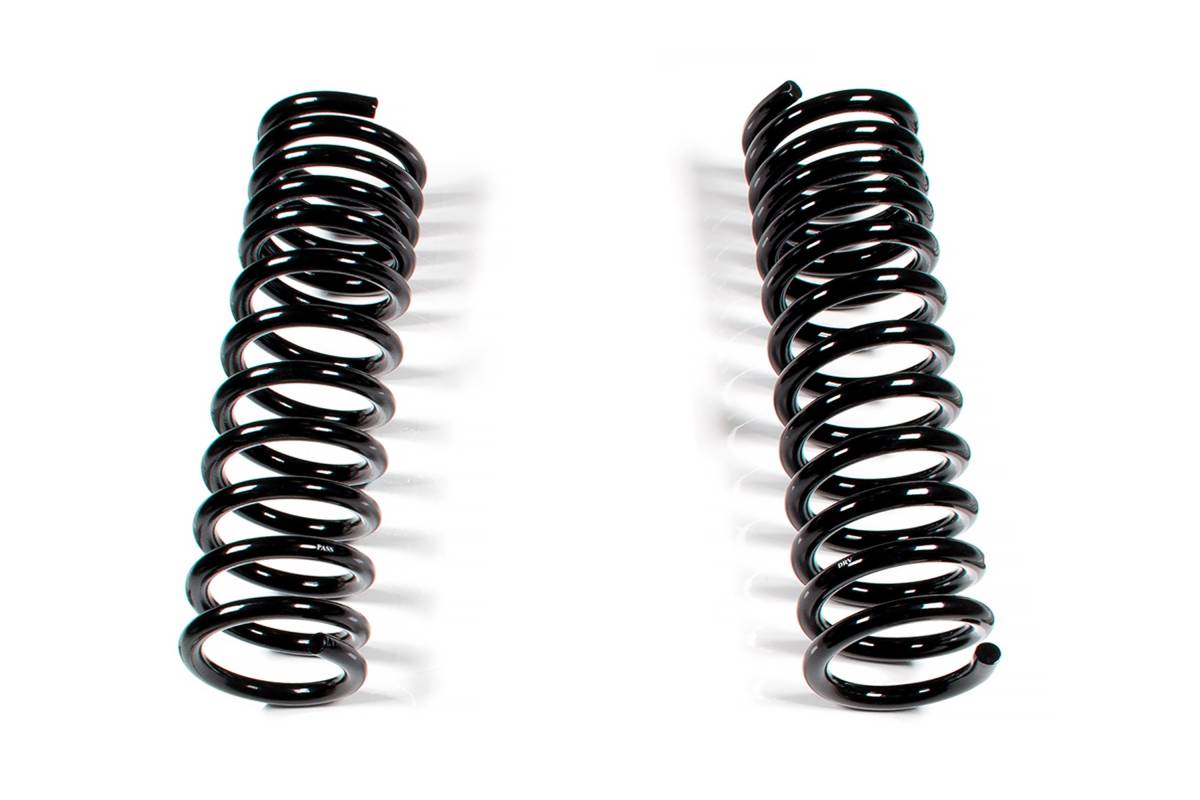Custom tune the spring rate and ride height of your 4-inch lifted (diesel) or 5.5-inch lifted (gas) 2014–2018 RAM 2500 or 2013–2018 RAM 3500 by swapping coil springs. A critical part of your truck's suspension, BDS coil springs support the weight of the body and chassis while the suspension, wheels, and tires follow changes in road surface. Manufactured from high tensile steel, these direct OE replacement coil springs are engineered with a properly sized wire diameter, resulting in maximum reliability without premature coil bind.