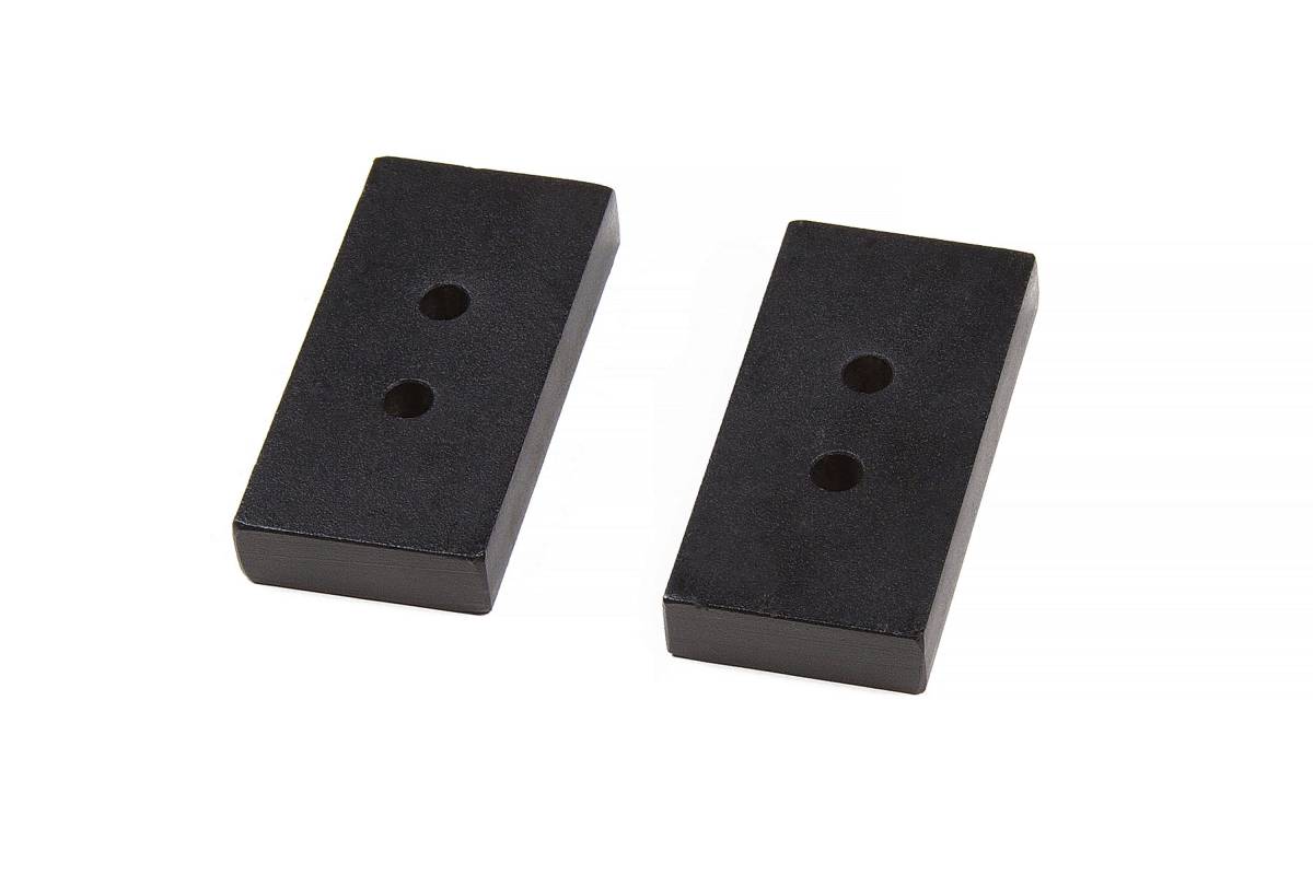 Upgrade your truck's rear suspension with these premium billet steel lift blocks. Designed for 3-inch wide leaf spring applications, these 1-inch lift blocks feature a flat design to help improve pinion angle once installed. Finished in a black e-coat and sold in pairs.
