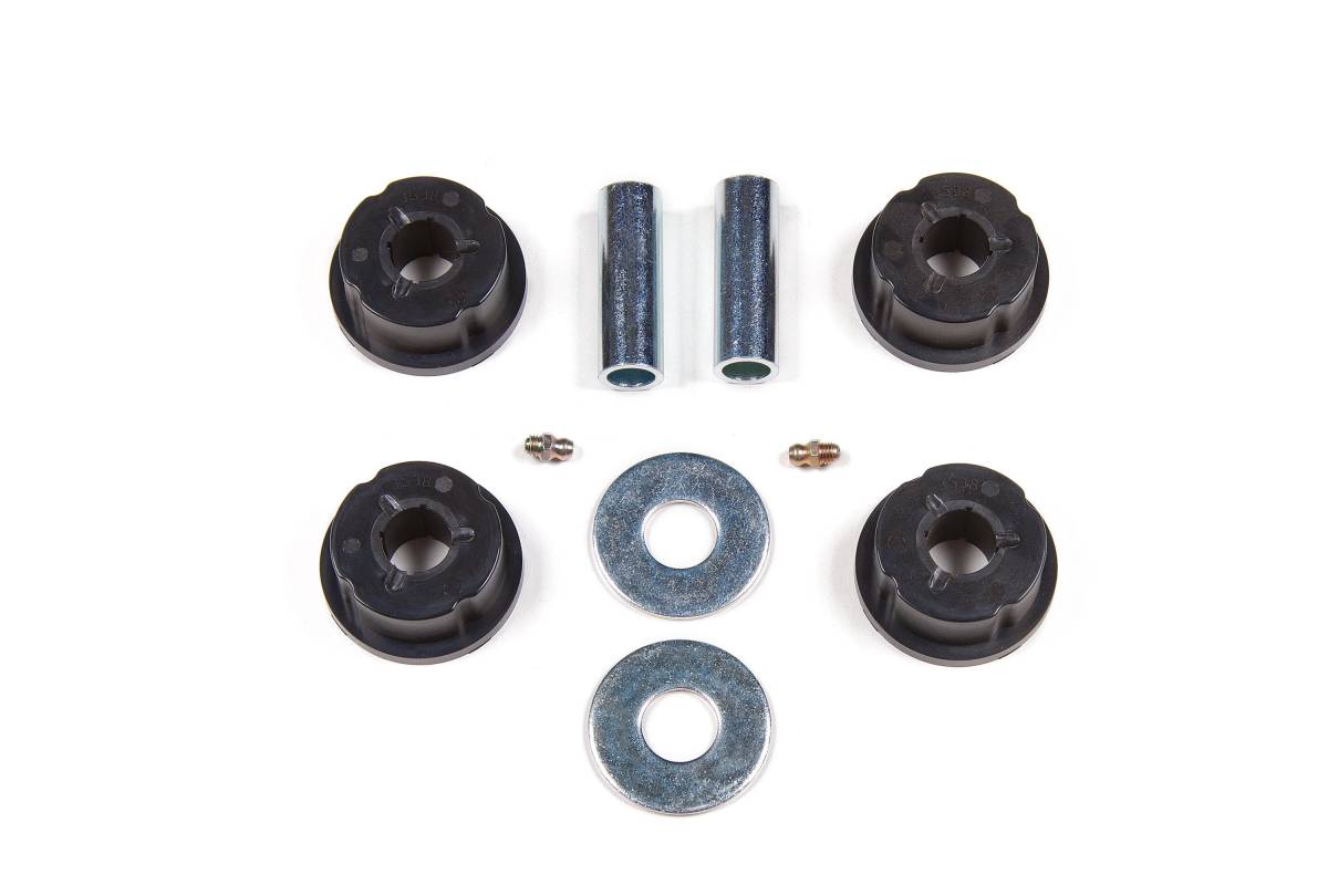 This replacement bushing kit is designed for BDS rear upper control arms on 2007–2018 Jeep Wrangler JK models. The polyurethane bushings are fluted for even distribution and include sleeves to restore performance when replacement is needed. Each kit includes 4 bushing halves and 2 sleeves for a straightforward installation.