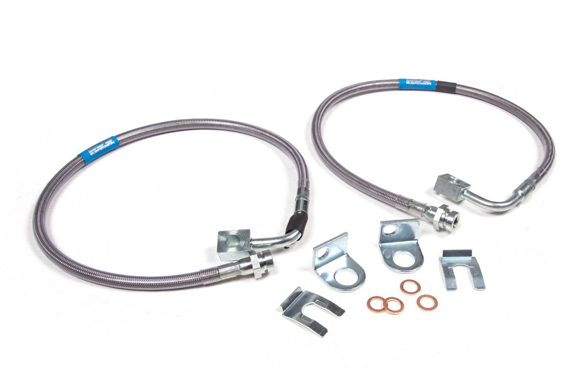 Upgrade the rear brake lines on your 2007-2018 Jeep Wrangler JK with this BDS stainless steel braided brake line set. Specially designed for vehicles with a 4 to 6.5-inch lift, these brake lines feature a kevlar liner for improved brake pedal feel and a teflon inner core approved for use with all brake fluids, including D.O.T. 5 Silicone. Compatible with BDS lift kits as well as other lift kits on the market, these lines use a one-piece crimped design with 4 levels of protection to handle on- and off-road abuse. The flexible construction resists kinking better than stock lines.