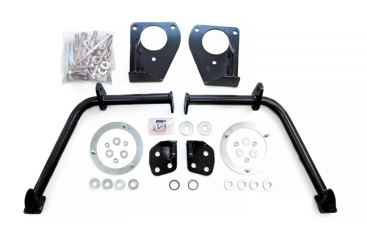 - This kit requires shocks in the stock location or appropriate limiting straps to avoid hanging the front axle from the dual shock cylinders.