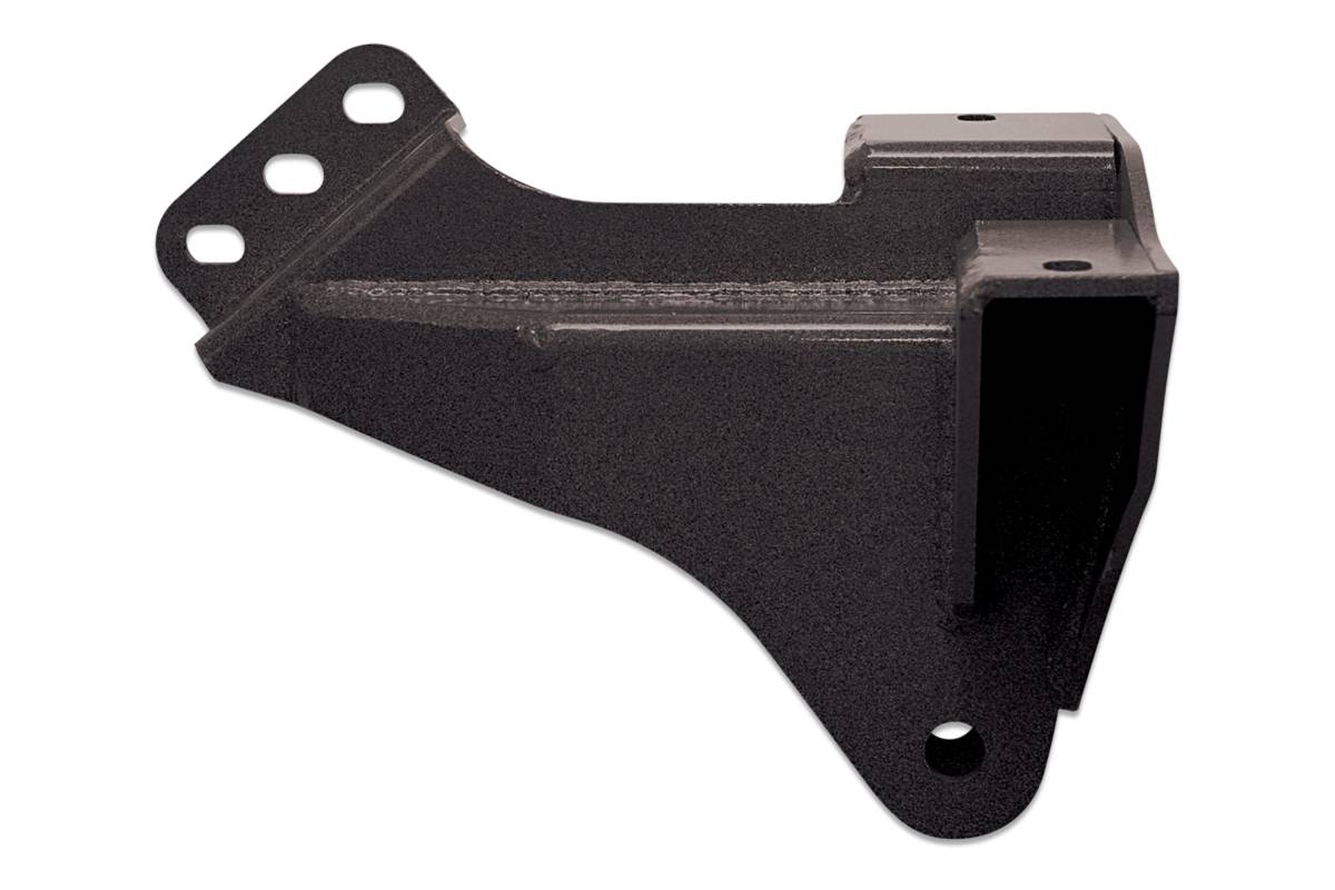 This heavy-duty front track bar relocation bracket is designed for 2005–2007 Ford F-250 and F-350 Super Duty 4WD trucks running 8 inches of lift. It replaces the OE track bar frame mount to keep the front axle and suspension components centered, correcting the track bar angle so it remains in phase with the steering linkage for optimal handling. A slotted track bar mounting hole combined with offset cam locks provides adjustability across a range of lift heights.
