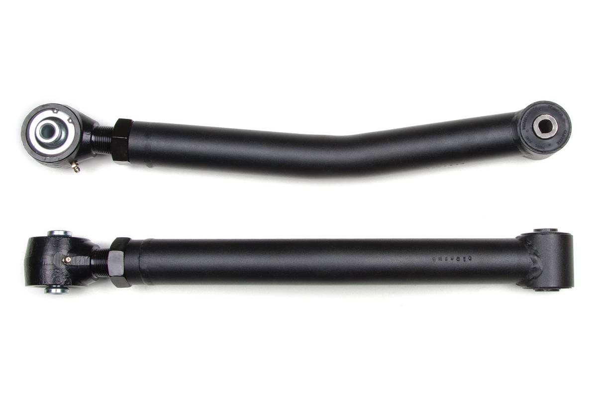 Upgrade the factory control arms on your 2007-2018 Jeep Wrangler JK with BDS heavy-duty rear lower replacements. Designed as a bolt-in upgrade, these control arms add strength and adjustability to stock or lifted vehicles. Built from thick-wall tubing and specially formed to maximize tire clearance. At the axle end, they utilize an OE-style rubber bushing for long, service-free operation and better isolation of noise, vibration, and harshness (NVH). At the frame mount, a large forged flex end provides strength, durability, and off-road articulation. The forged flex ends allow length adjustments to correctly position the rear axle and correct caster, with 15 degrees of misalignment capability in either direction for improved trail flex.