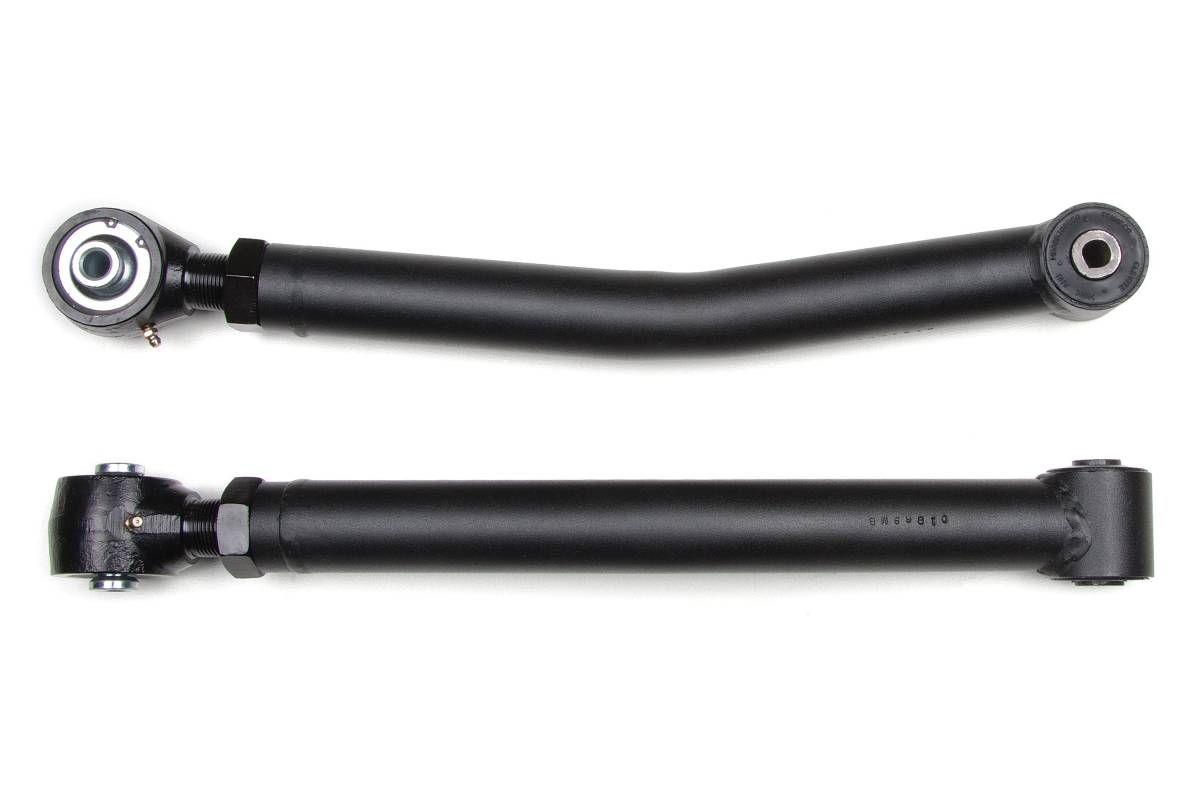 Upgrade the factory control arms on your 2007–2018 Jeep Wrangler JK with BDS heavy-duty rear lower replacements. Designed as a bolt-in upgrade, these control arms add strength and adjustability to stock or lifted vehicles. Built from thick-wall tubing and specially formed to maximize tire clearance, they feature an OE-style polyurethane bushing at the axle end for long, service-free operation and improved isolation of noise, vibration, and harshness (NVH). At the frame mount, a large forged flex end provides strength, durability, and enhanced off-road articulation. The forged flex ends allow length adjustments to correctly position the rear axle and correct caster, with 15 degrees of misalignment capability in either direction for greater trail flex.