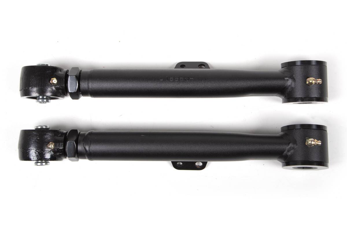 Upgrade the factory control arms on your 1997–2006 Jeep Wrangler TJ or 1993–1998 Grand Cherokee ZJ with BDS heavy-duty rear upper replacements. Designed as a bolt-in upgrade, these control arms add strength and adjustability to stock or lifted vehicles. Built from thick-wall tubing and specially formed to maximize tire clearance, they feature an OE-style polyurethane bushing at the axle end for long, service-free operation and improved isolation of noise, vibration, and harshness (NVH). At the frame mount, a large forged flex end provides strength, durability, and off-road articulation. The forged flex ends allow length adjustments to correctly position the rear axle and correct caster, with 15 degrees of misalignment capability in either direction for enhanced trail flex.
