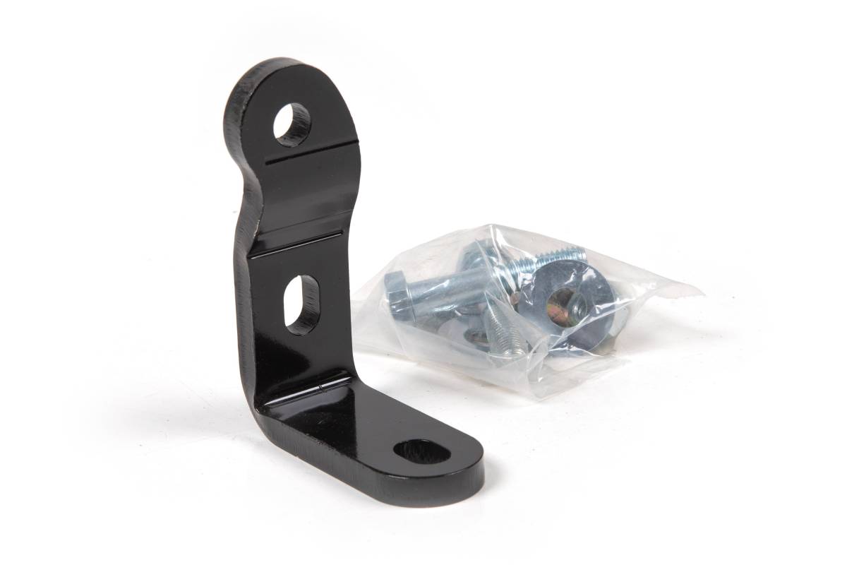 Replace the factory track bar frame mount on your 1987–1995 Jeep Wrangler YJ to accommodate 5 to 6 inches of lift and keep the front axle and suspension components centered. The BDS heavy-duty replacement track bar relocation bracket bolts directly in place, correcting the track bar angle to keep it in phase with the steering linkage for optimal handling. A slotted track bar mounting hole combined with offset cam locks allows adjustment across a range of lift heights.