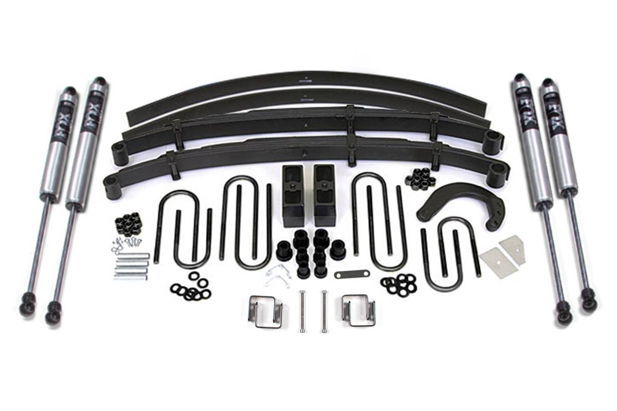 This 4-inch lift kit from BDS Suspension is designed for 1977–1987 Chevy and GMC 3/4 ton trucks and SUVs (K20, K25) to improve stance, performance, and capability. The kit includes clearance for up to 35-inch tires and contains everything needed for a complete installation. Up front, it features Glide-Ride leaf springs, a 4-inch steering arm for steering correction, brake line brackets, and precision-tuned shocks. The rear lift is available in block kit, block kit with add-a-leaf, or full leaf spring configurations, each paired with longer u-bolts and matching rear shocks.