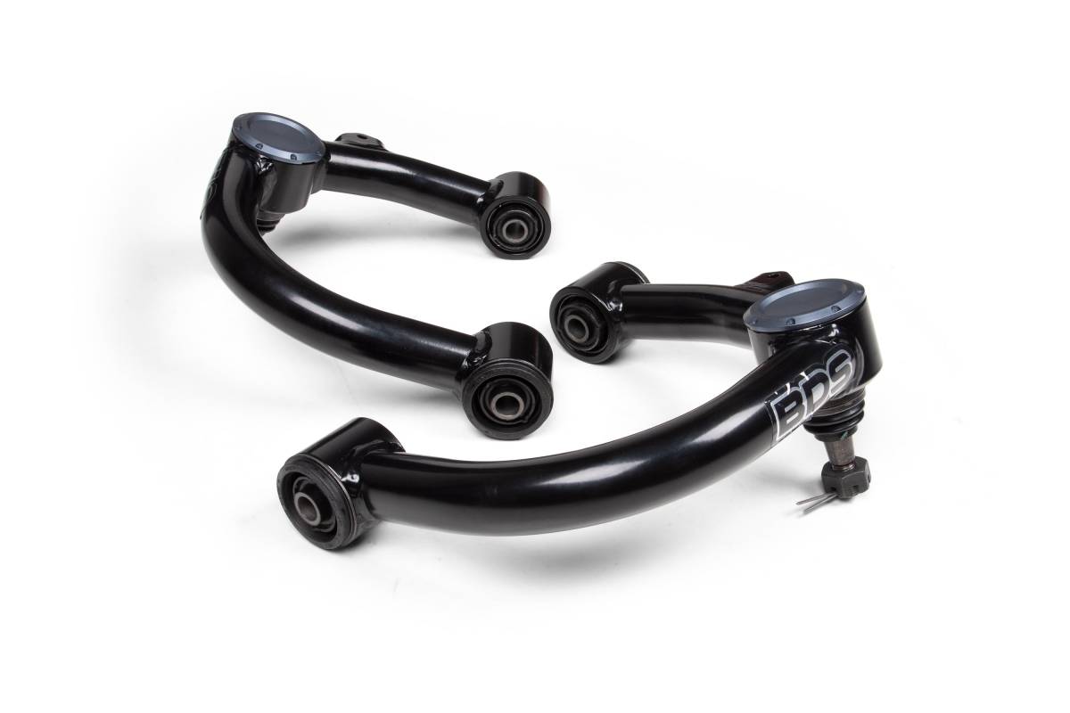 Upgrade the stock OE upper control arms on your 2015–2025 Toyota Hilux with BDS performance UCAs. Specially designed for leveled and lifted applications, these arms are constructed from high-strength 1.5-inch OD x 0.120-wall steel tubing and feature an indexed ball joint cup to precisely adjust ball joint positioning. Compatible with BDS lift kits as well as other lift and leveling kits on the market. Frame mounting ends feature durometer-specific rubber bushings and premium-quality ball joints for smooth, quiet operation and superior durability compared to arms featuring uniballs, poly bushings, or heims.