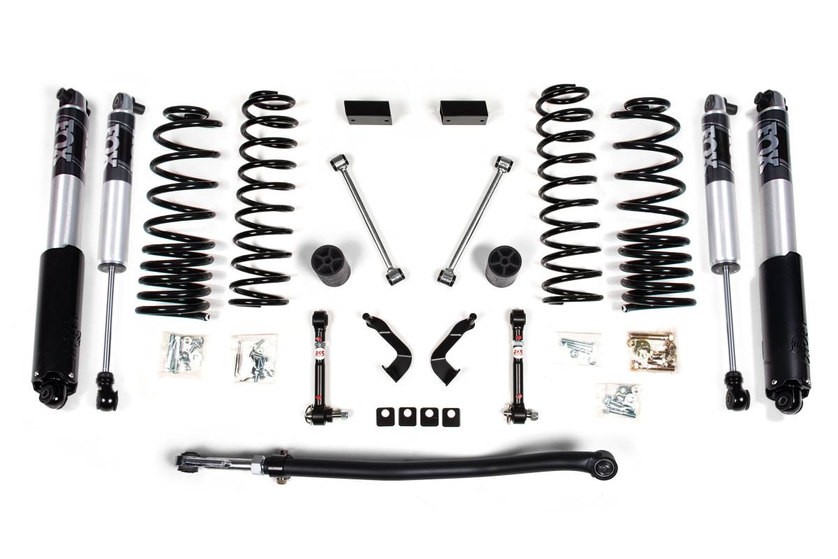 BDS Suspension's 3-inch lift kit for the Jeep Gladiator JT is designed to improve stance and provide clearance for up to 35-inch tires. The kit includes all components necessary for a complete installation, combining BDS Pro-Ride Coil Springs front and rear with a selection of performance shock absorbers. A heavy-duty adjustable front track bar recenters the front axle, while JKS quicker disconnects unlock front suspension flex without sacrificing on-road manners. Bump stop extensions, front lower control arm cam locks, and rear sway bar links round out the hardware.