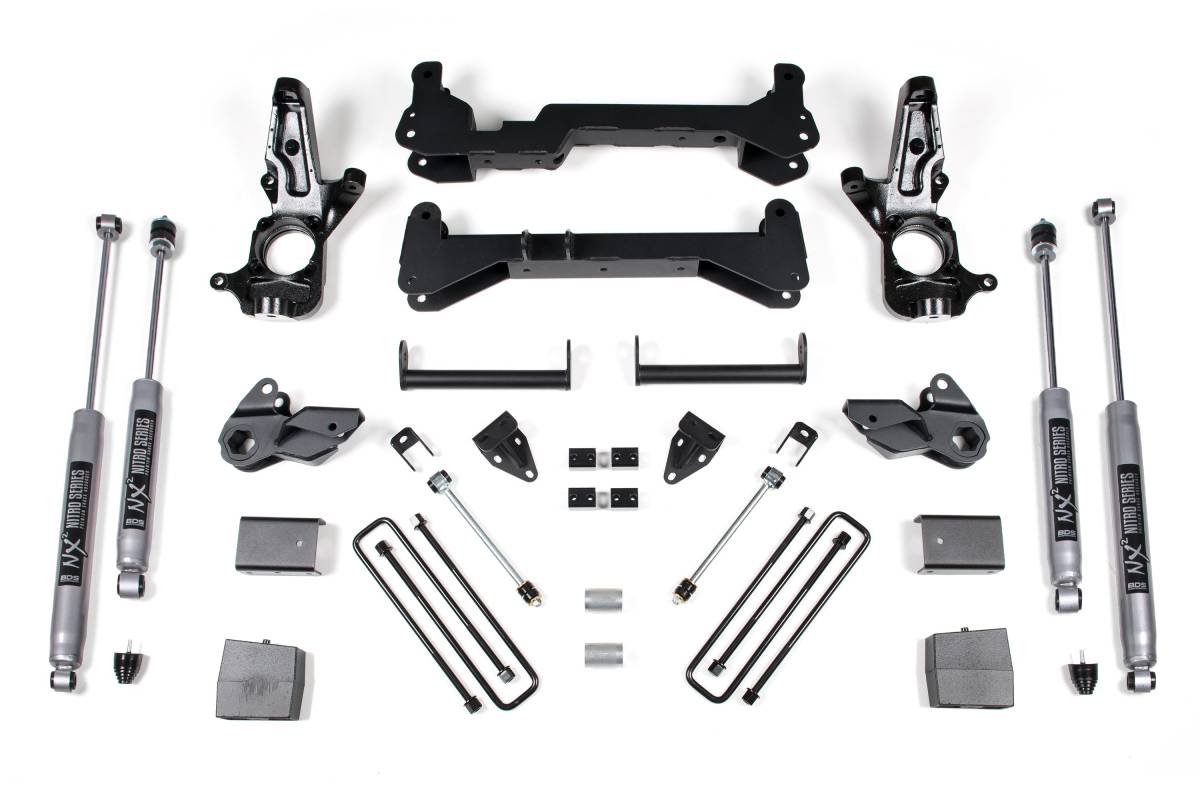 The BDS 6-inch lift kit for the 2001–2010 Chevy Silverado and GMC Sierra 2500HD 2WD is engineered to improve stance, performance, and off-road capability. BDS designed a No Torsion Bar Drop System that mounts the torsion bars directly to the top of the lower a-arm, eliminating the need to drop the torsion bar cross-member and maximizing ground clearance. The kit provides clearance for up to 35-inch tires and includes everything needed for a comprehensive front and rear suspension lift.