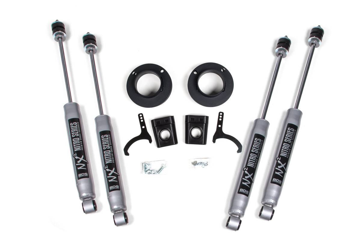 This 2-inch leveling kit from BDS Suspension is designed to level the front of 2014–2026 RAM 2500 4WD trucks equipped with factory rear air ride. The kit improves stance, provides clearance for up to 35-inch tires, and includes everything needed for a complete installation. Components include steel-fabricated coil spacers, extended bump stops, an air ride sensor bracket, and a choice of custom-tuned NX2 Nitro or FOX 2.0 Performance Series shocks.