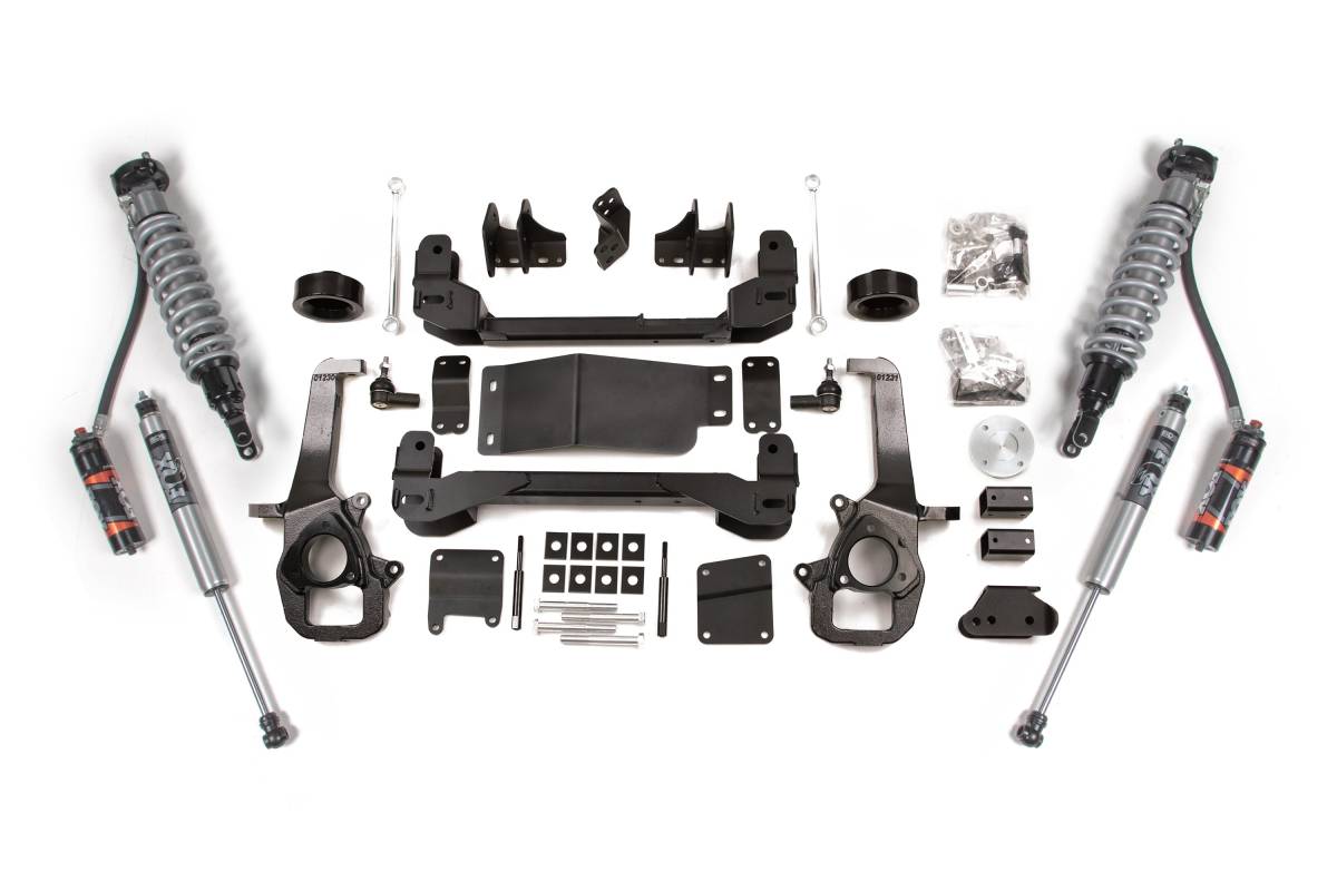 This BDS 4" Coilover Lift Kit is designed for unmatched performance, stance, and strength for the Ram 1500 4WD. This premium system clears up to 35" tires and replaces factory components with heavy-duty, high-clearance parts built to handle any terrain. Up front, FOX 2.5 Performance Elite Coilovers with DSC provide adjustable damping for ultimate on- or off-road control. CNC-machined ductile iron steering knuckles maintain proper geometry and ESC compatibility, while 1/4" steel high-clearance crossmembers and HD skid plates deliver strength and protection. Out back, your choice of rear lift option and rear shock configuration is paired with relocation brackets that correct pinion and axle geometry.