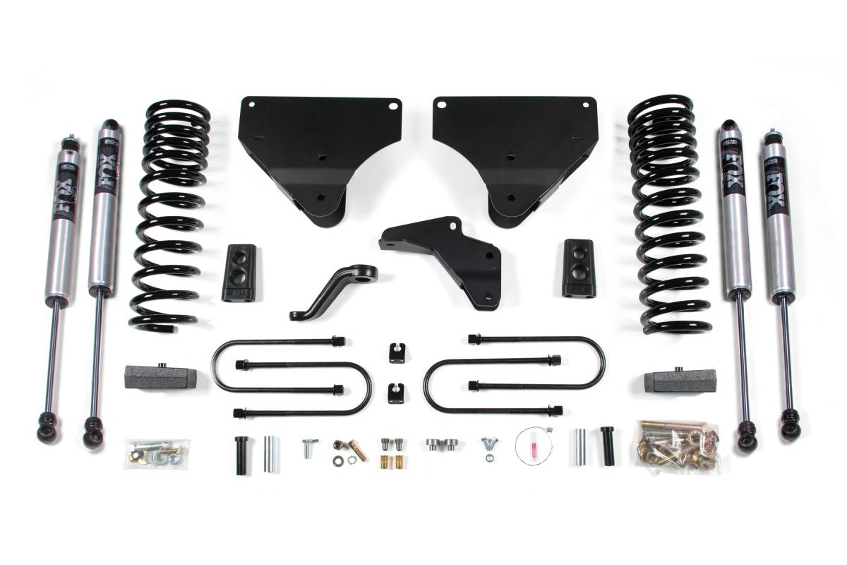 This 4-inch lift kit from BDS Suspension is designed for 2013–2018 RAM 3500 gas-powered 4WD trucks. The kit is engineered to improve stance, performance, and capability, providing clearance for up to 35-inch tires. Up front, the kit includes gas-specific Pro-Ride coil springs, radius arm drop brackets, a forged drop pitman arm, a track bar bracket for steering correction, bump stops, brake line brackets, and precision-tuned nitrogen charged shocks. In the rear, the kit utilizes a high-strength fabricated lift block, longer U-bolts, and a matching set of rear shocks.