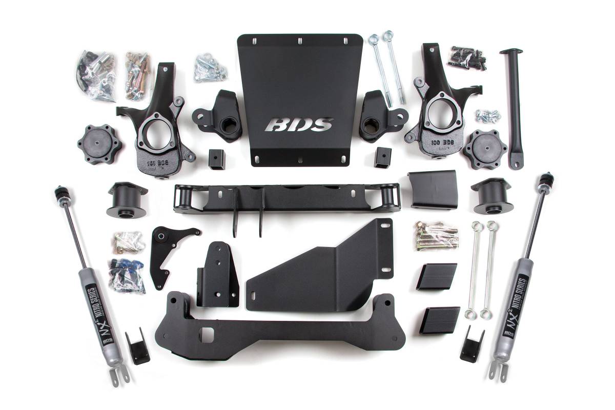 The BDS 4-inch lift kit is designed to improve the stance, performance, and capability of the 2000–2006 Chevrolet Avalanche, Suburban, and Tahoe and GMC Yukon 1500 4WD. BDS engineered a No Torsion Bar Drop System where the torsion bars mount directly to the top of the lower a-arm, eliminating the need to drop the torsion bar cross-member and maximizing ground clearance. This kit provides clearance for up to 33-inch tires and corrects suspension and steering geometry for proper on-road handling at the new ride height.