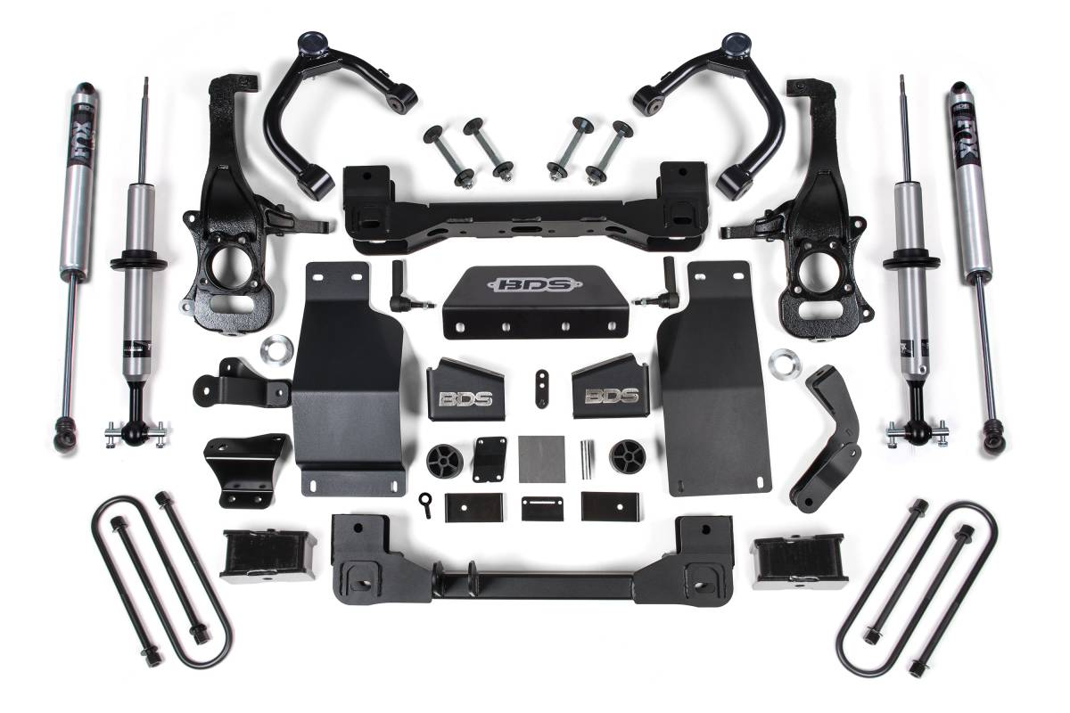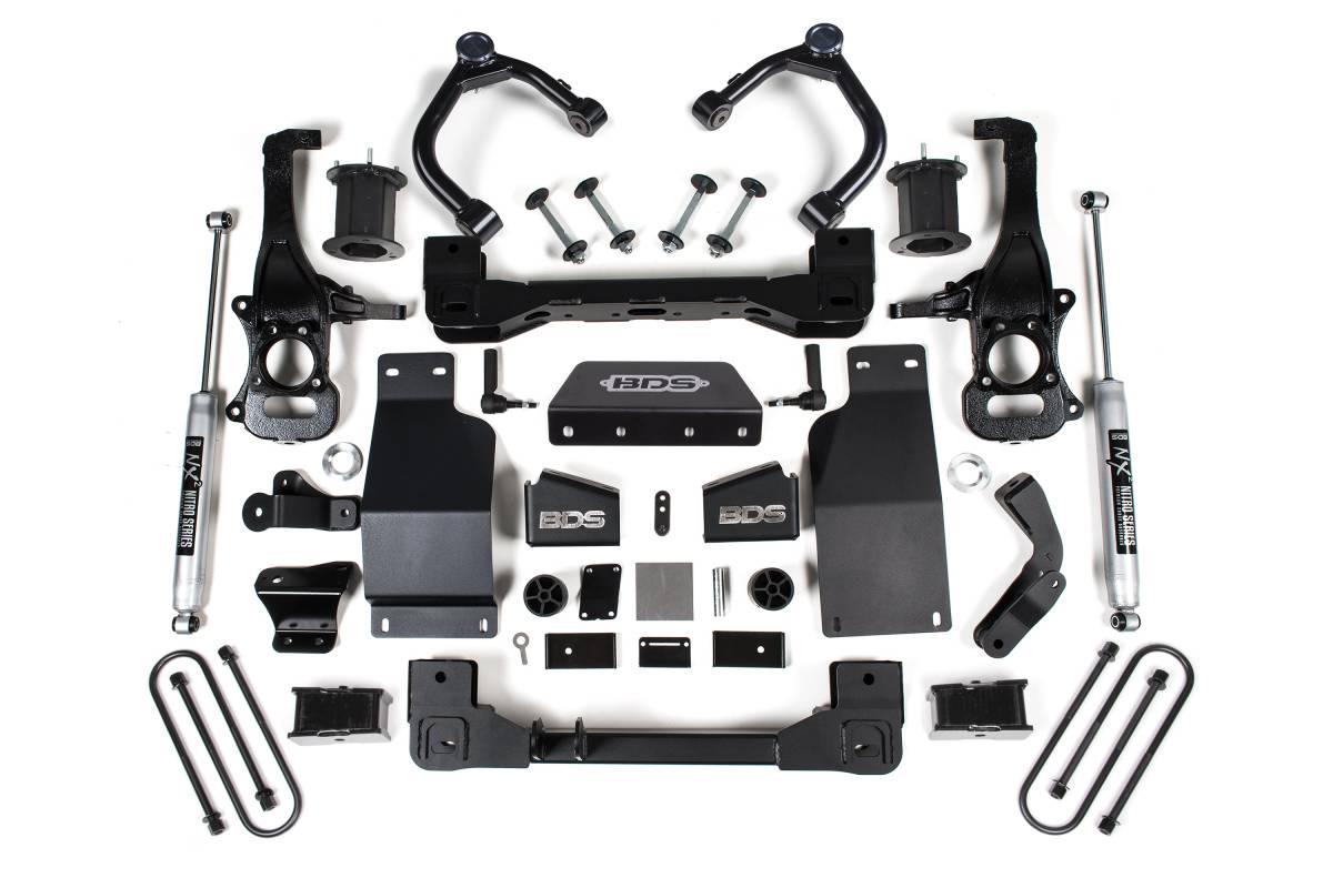 BDS Suspension's 4-inch lift kit is engineered to improve the stance, performance, and off-road capability of the 2025–2026 Chevy Silverado 1500 and GMC Sierra 1500 (4WD, Diesel and 2.7 Gas models). The kit provides clearance for tires up to 33 inches and includes everything necessary for a comprehensive front and rear suspension lift.