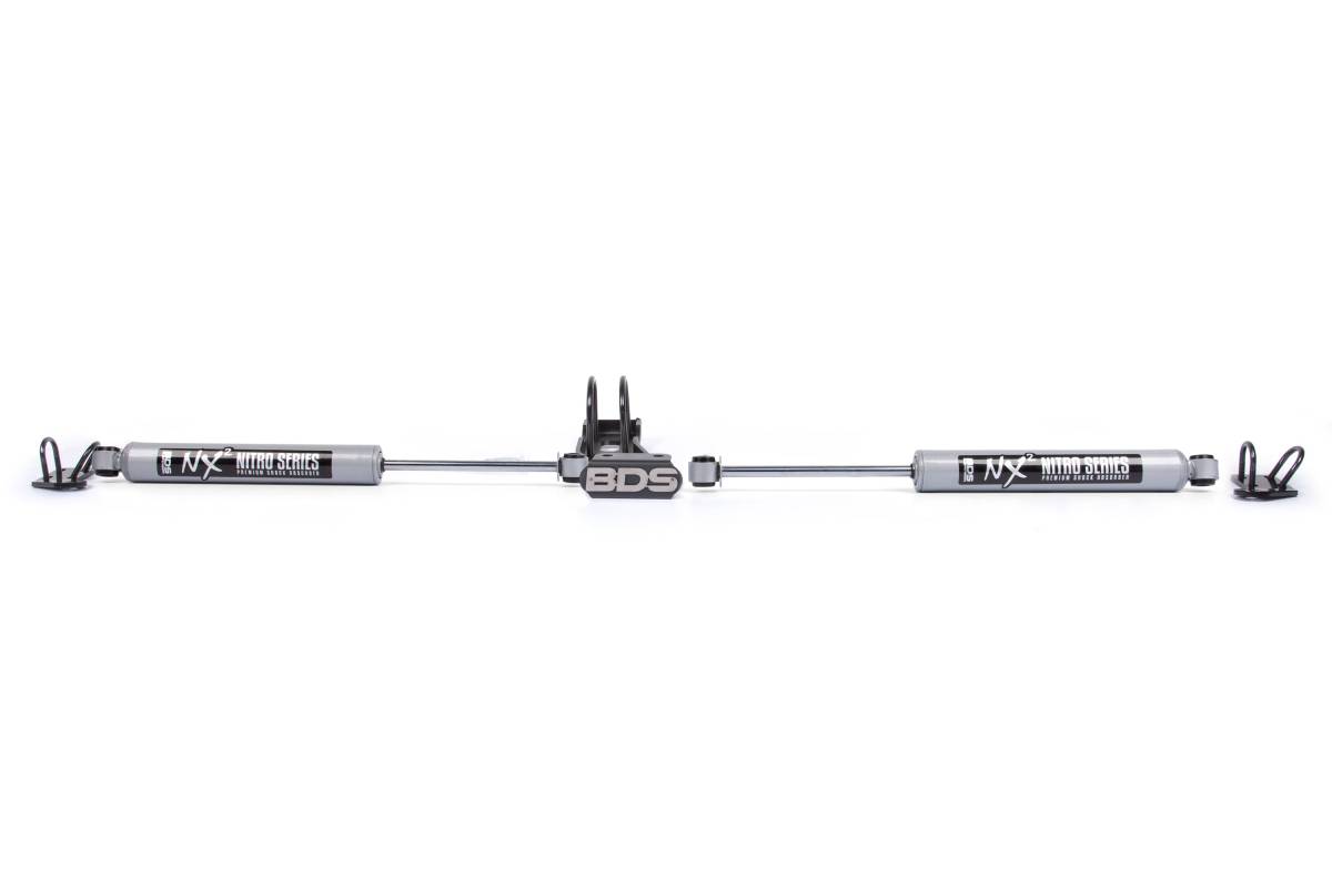Enhance the handling of your 1973–1987 Chevy or GMC truck or 1969–1991 SUV with a BDS dual steering stabilizer mounting kit paired with NX2 shocks. Installing larger tires places additional force on your truck's suspension; steering stabilizer shocks reduce bump steer and steering wheel feedback. BDS mounting brackets are constructed of high-strength steel and bolt on directly. Used alongside a BDS lift kit, this system helps extend the lifespan of factory steering components.